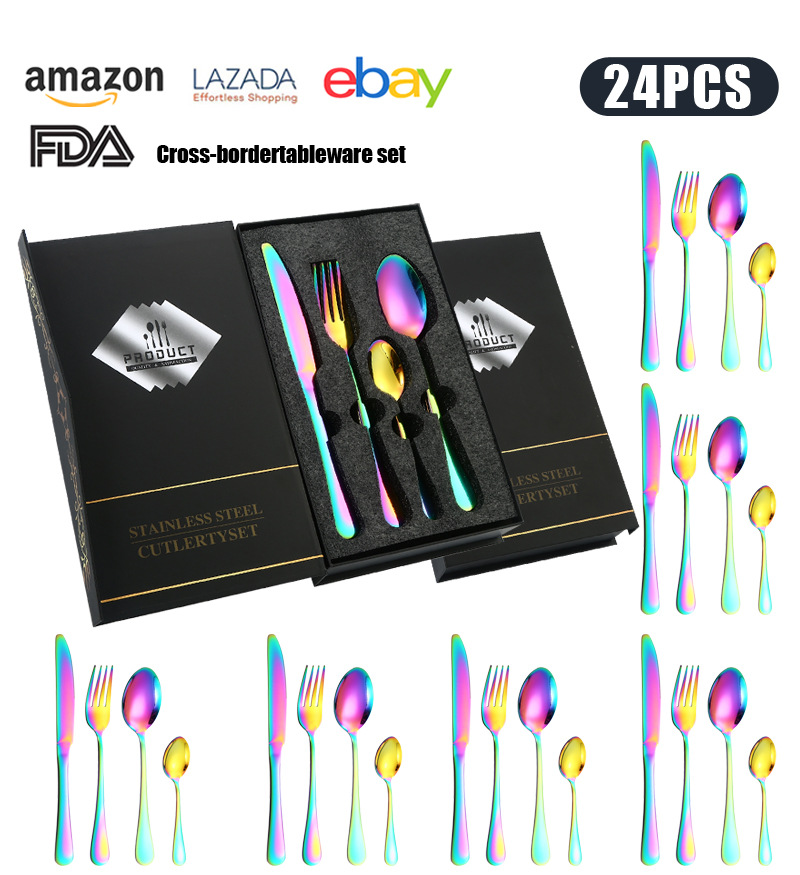 cross-border hot selling knife and fork package gift box 24-piece tableware set western tableware steak knife and fork gold-plated spoon