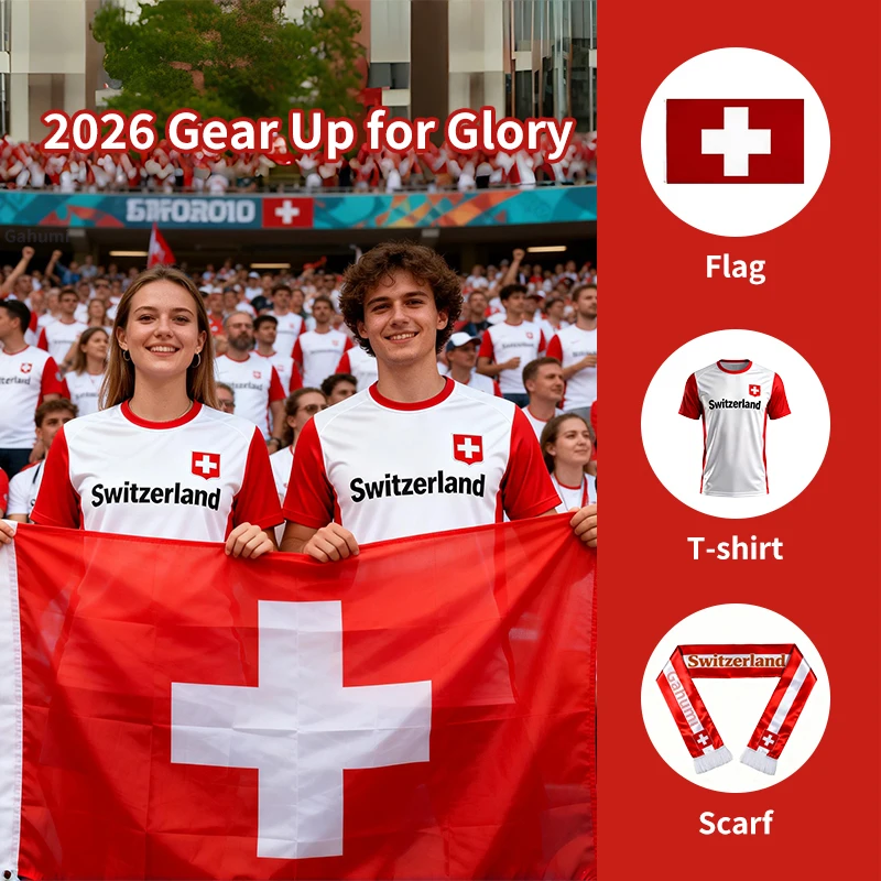 Gahumi 2026 Canada Mexico USA Soccer Switzerland Fans Flag High Quality Any Logo Color Digital Polyester Fabric Custom Flag