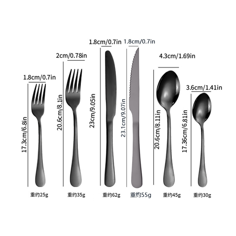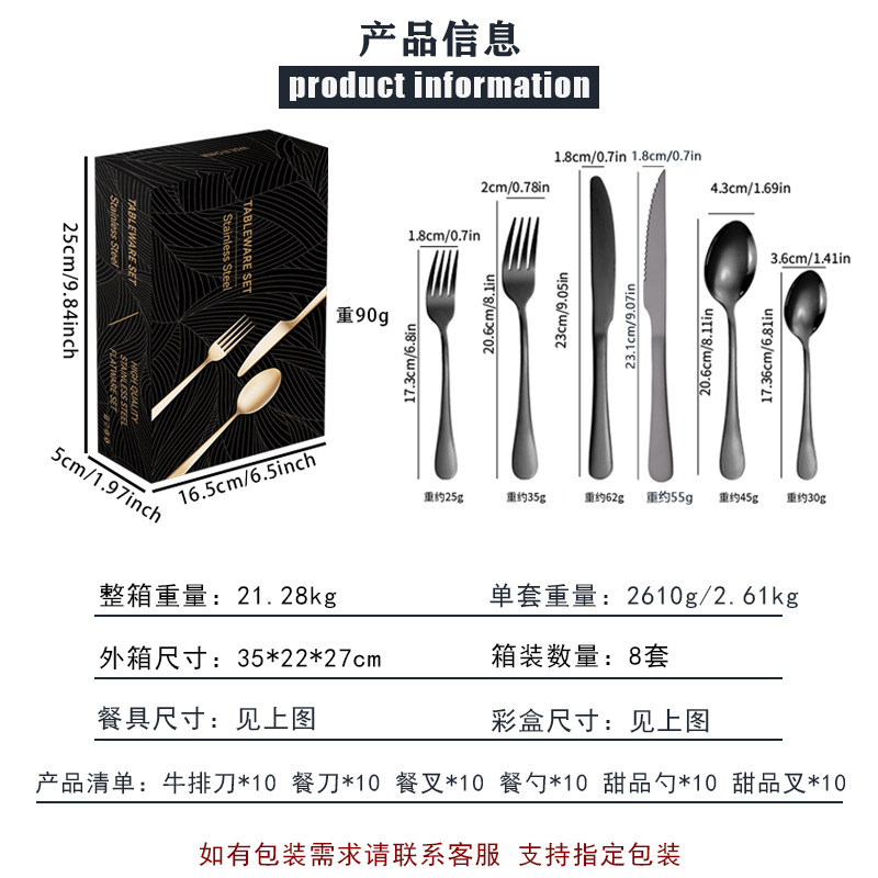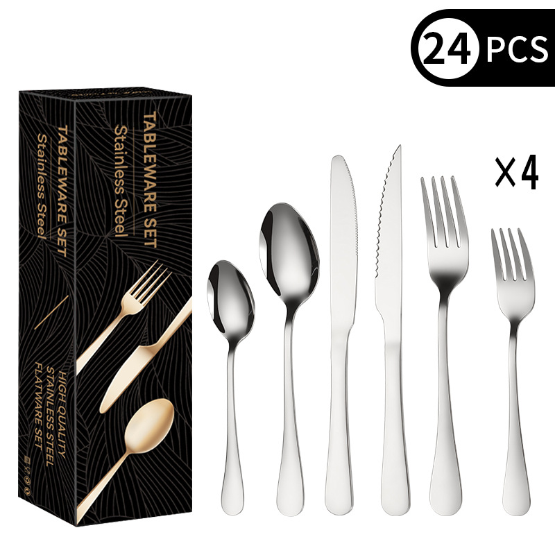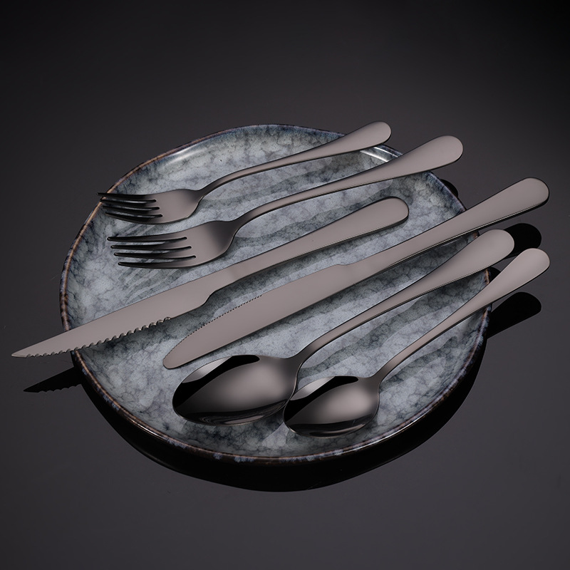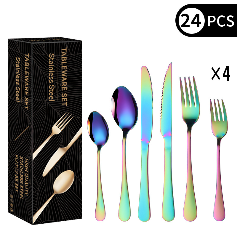 cross-border amazon stainless steel knife, fork and spoon western dinner set titanium-plated black steak knife and fork spoon 24-piece set