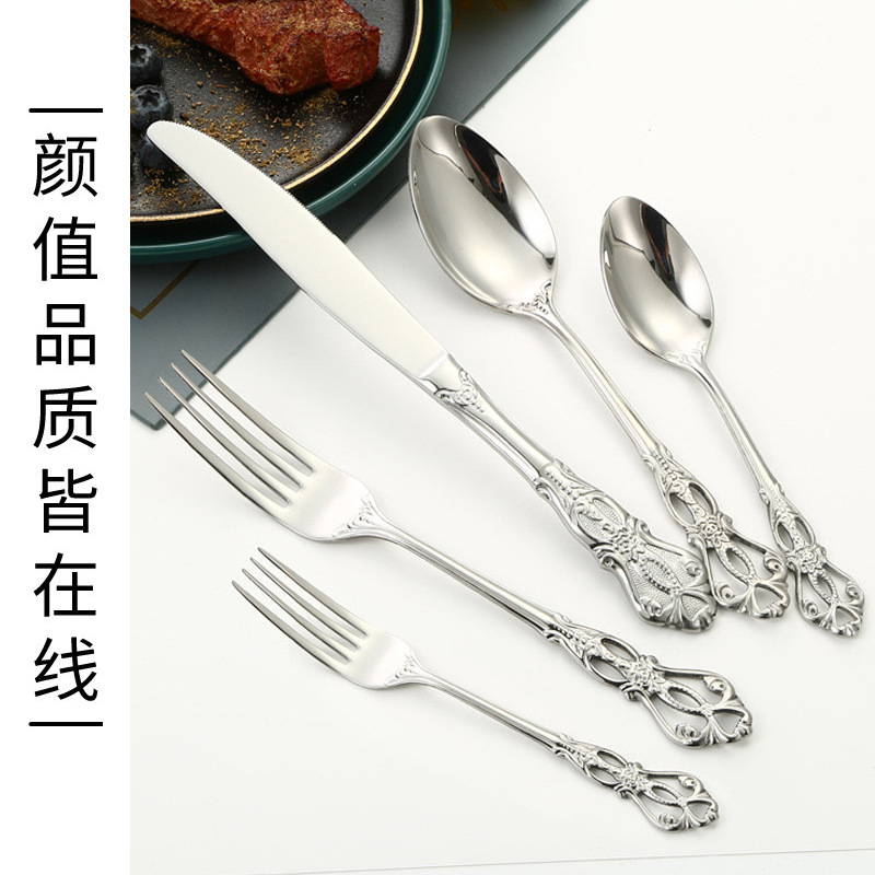 cross-border royal court stainless steel tableware 40-piece set knife, fork and spoon mail order box set exquisite light luxury western food/steak knife and fork