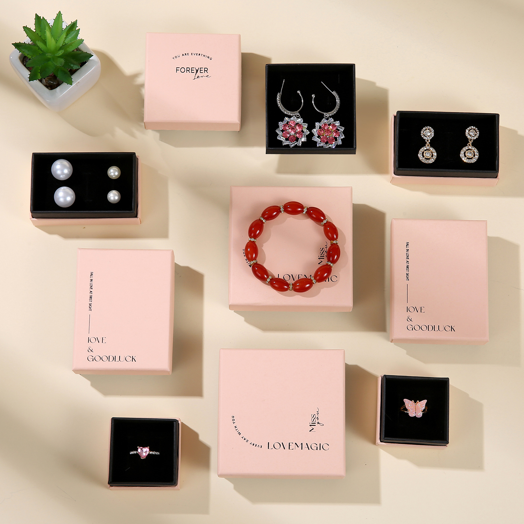 high-grade peach pink bracelet box student girlfriends necklace ring jewelry box stud earrings box in stock wholesale