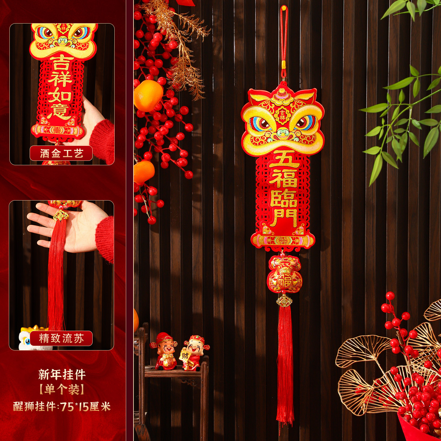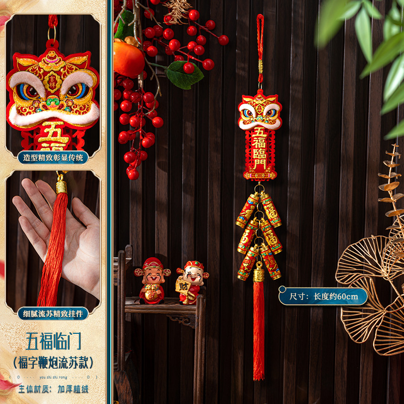 [fu character firecrackers tassel] five blessings