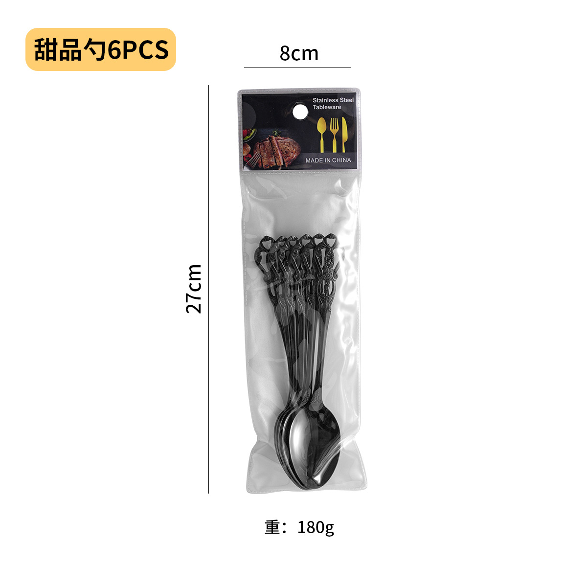 (type b) double-headed flower/black/dessert spoon 6pcs