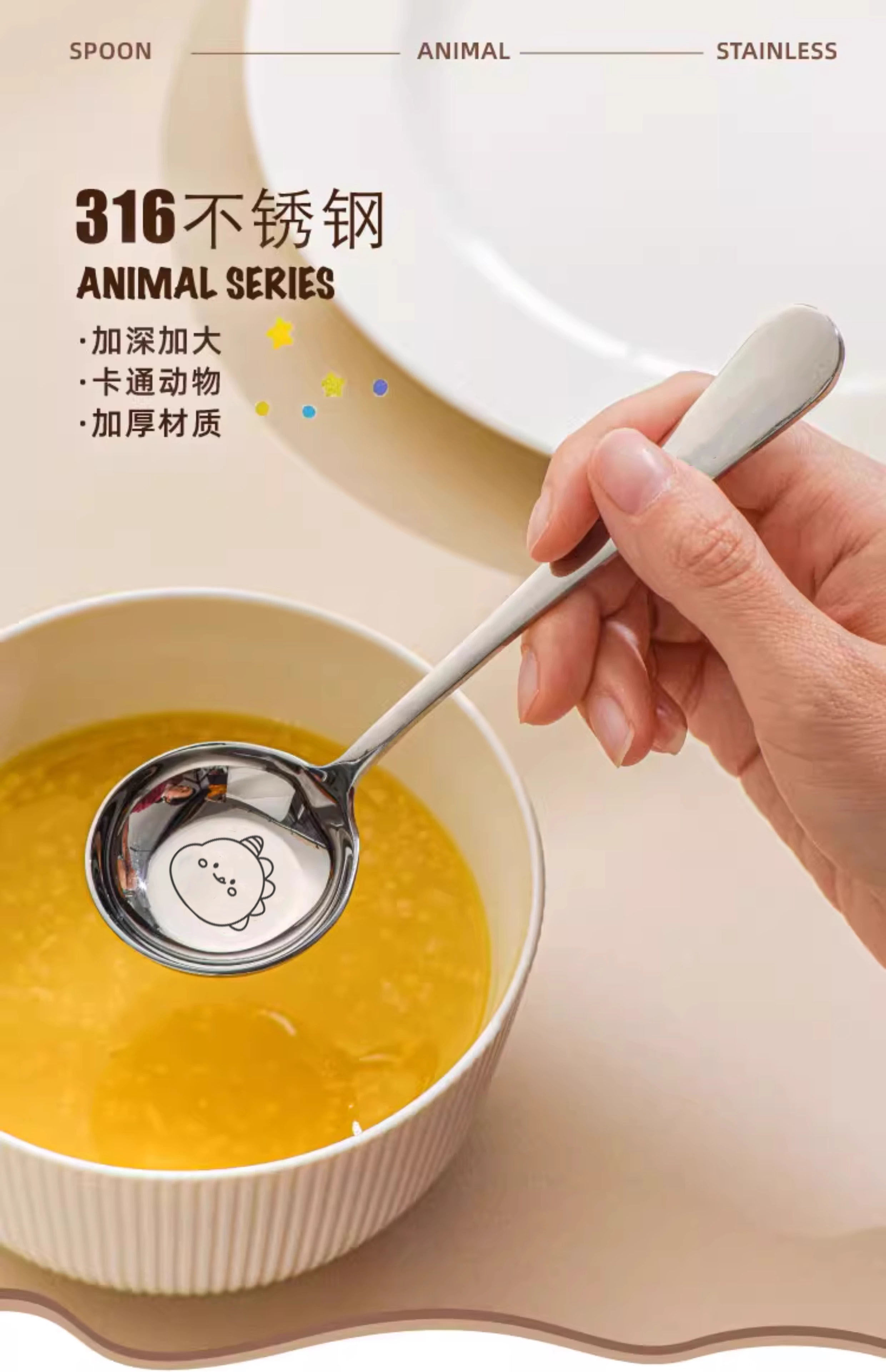 316 stainless steel round spoon (small dinosaur) 1 pack