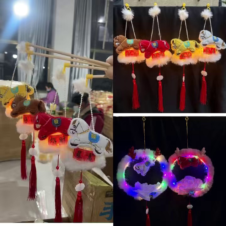 Horse Year Cartoon Glowing Children's Lanterns, New Year's Hot-selling Festive Goods, Popular at Night Markets. Made of eco-friendly materials, with safety certification, LED light bulbs are energy-saving and durable, solving the safety hazards during children's play. Cartoon design is cute and fun, stimulating emotional resonance during festivals, making it an ideal choice for parent-child interaction and night markets in scenic spots. Brand backing, hot-selling across the internet, enhancing the attraction of the stall, lighting up the joyous atmosphere of the New Year.
