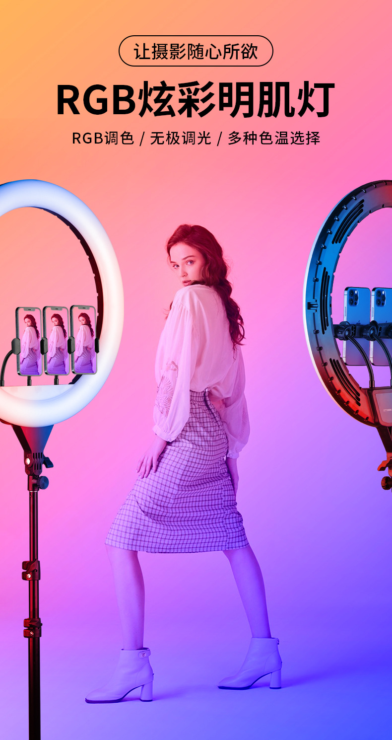 customized led three-color fill light adjustable ambience light live photography rgb ring fill light gadget for live streaming