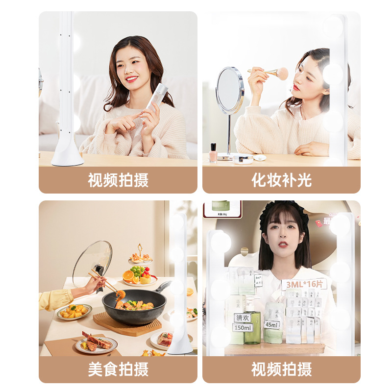 customized desktop live stream light double row fill light three color temperature photography fill light led four bank light mobile camera flash light for selfie