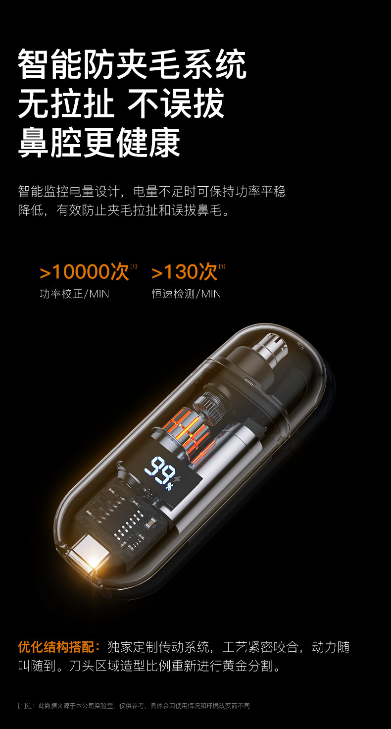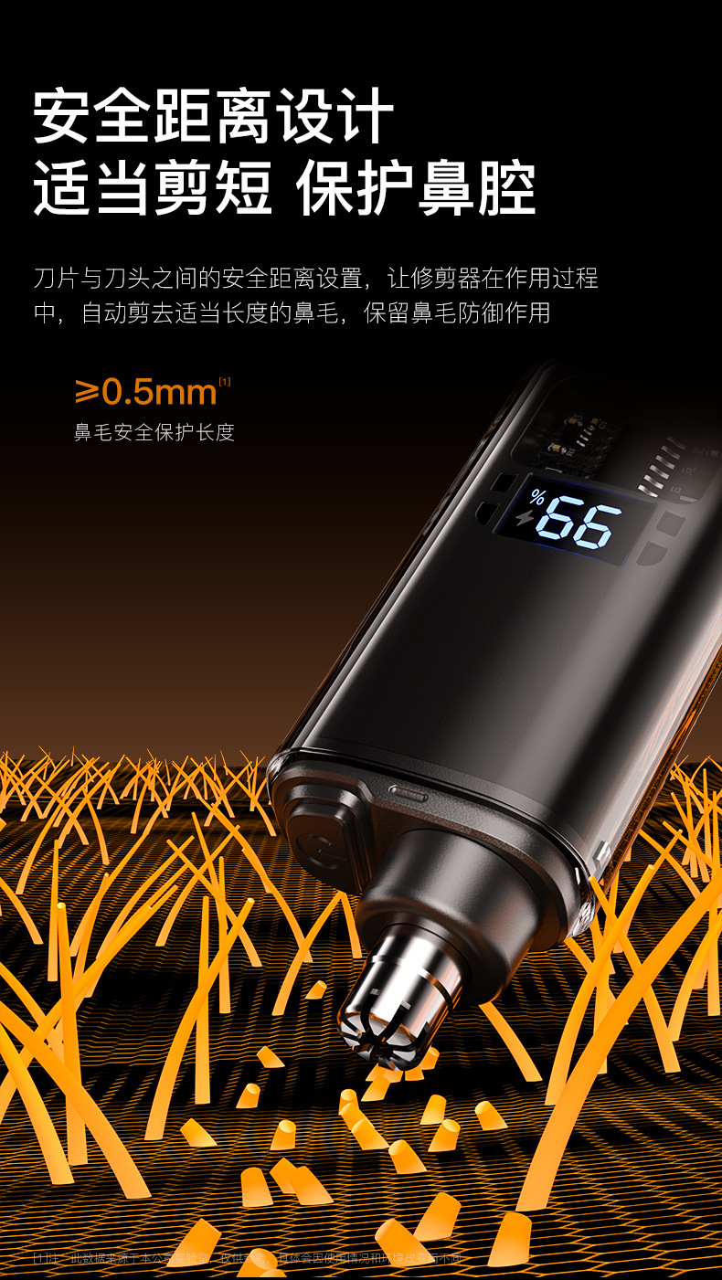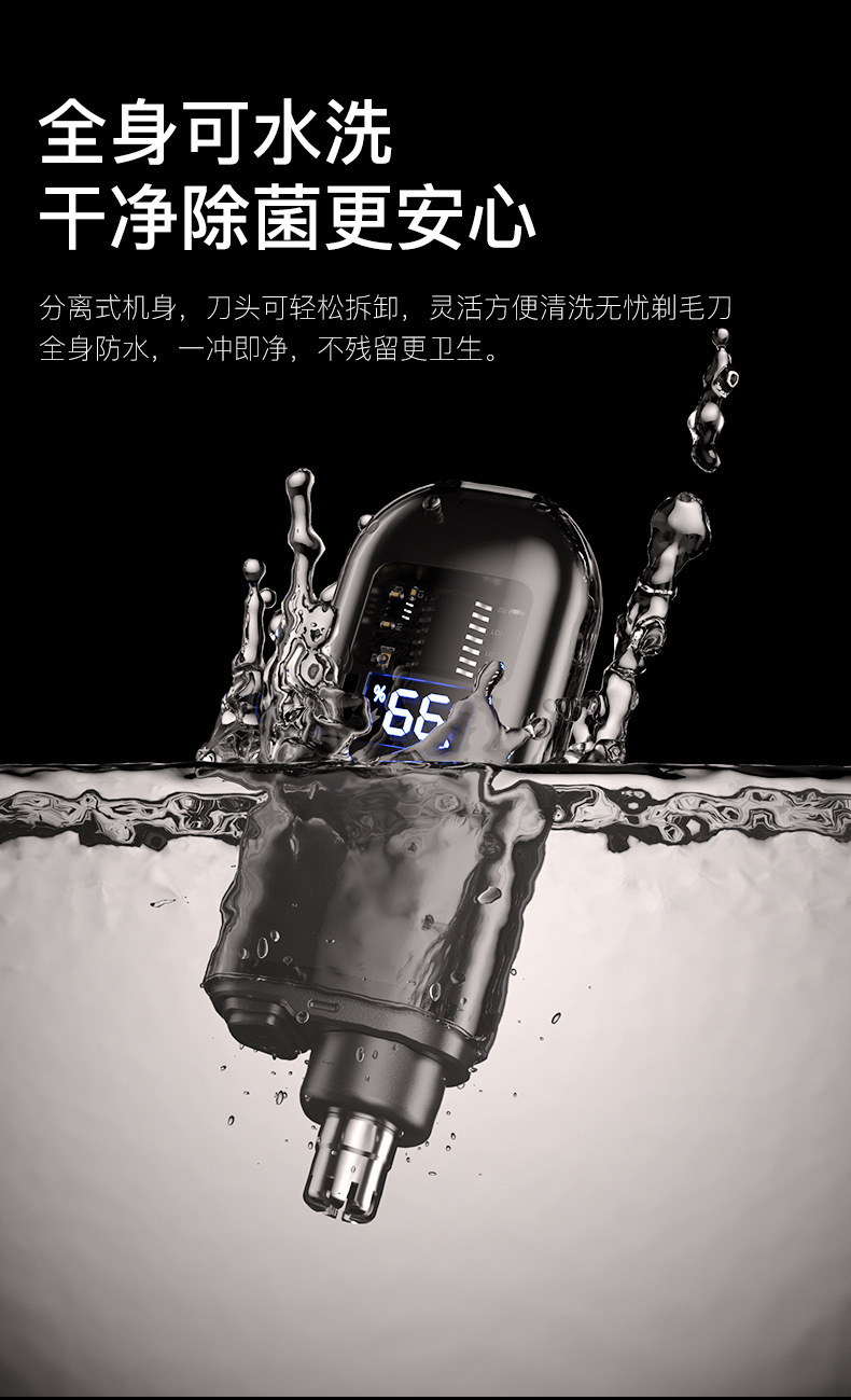 Product advantages: long battery life, water-resistant and easy to clean. Solves user pain points: says goodbye to awkward nose hair, enhancing personal image. The brand is ISO certified, with reliable quality.