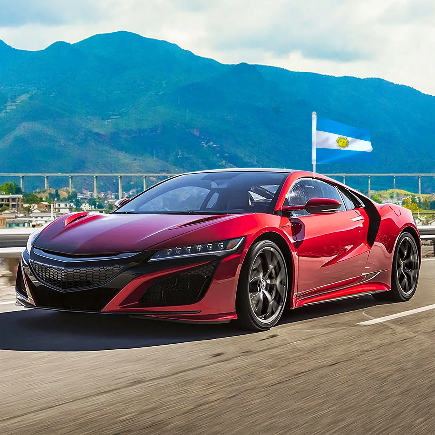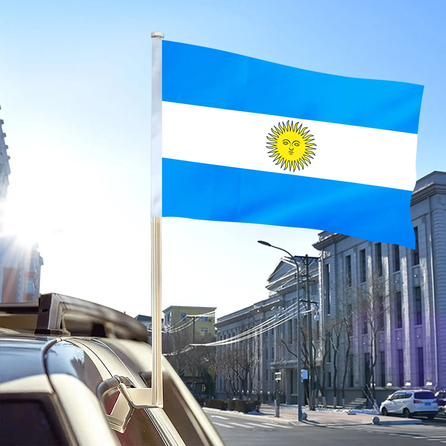 Gahumi Outdoor Customized Argentina Car Window Flag Blank Sublimation Printing Double Sided Mini Car Hood Flag With Pole