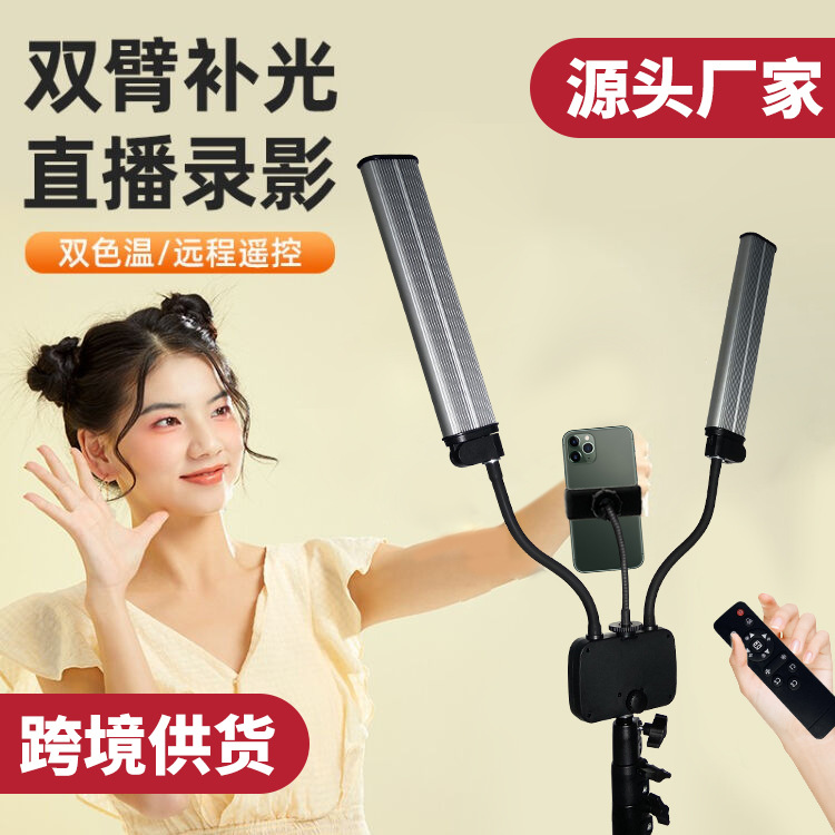 factory direct sales double arm light led fill light anchor with goods photography live streaming beauty lamp mobile phone selfie can be customized