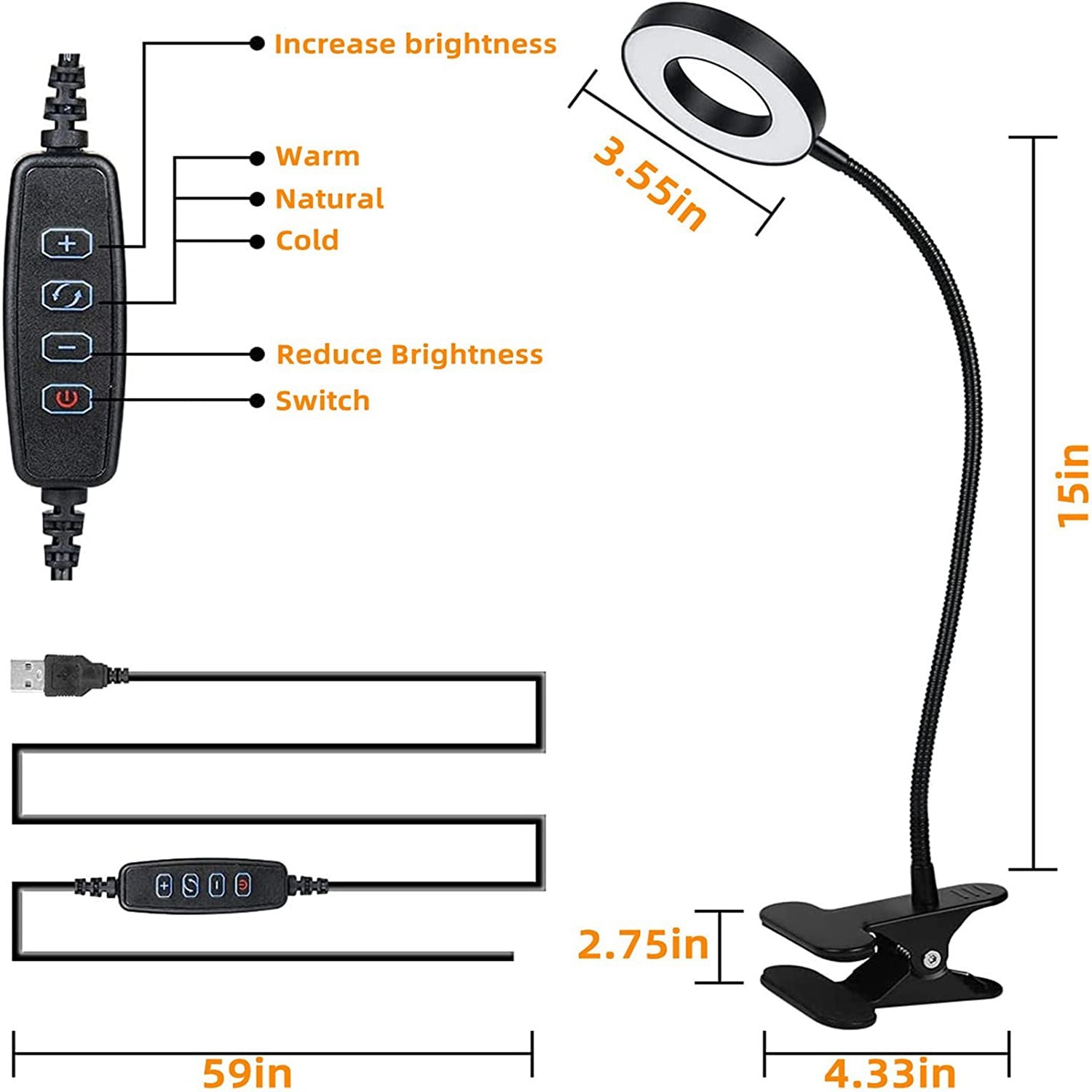 desktop table lamp with clamp creative usb student eye protection learning reading lamp flexible tube adjustable bedside lighting lamp