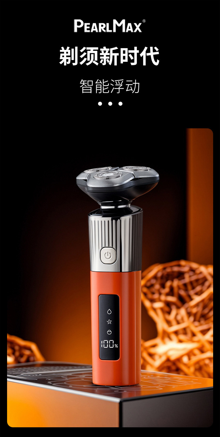 Pearl Max rotating magnetic suction three-blade electric shaver, equipped with LED LCD display, accurately controls the shaving time.