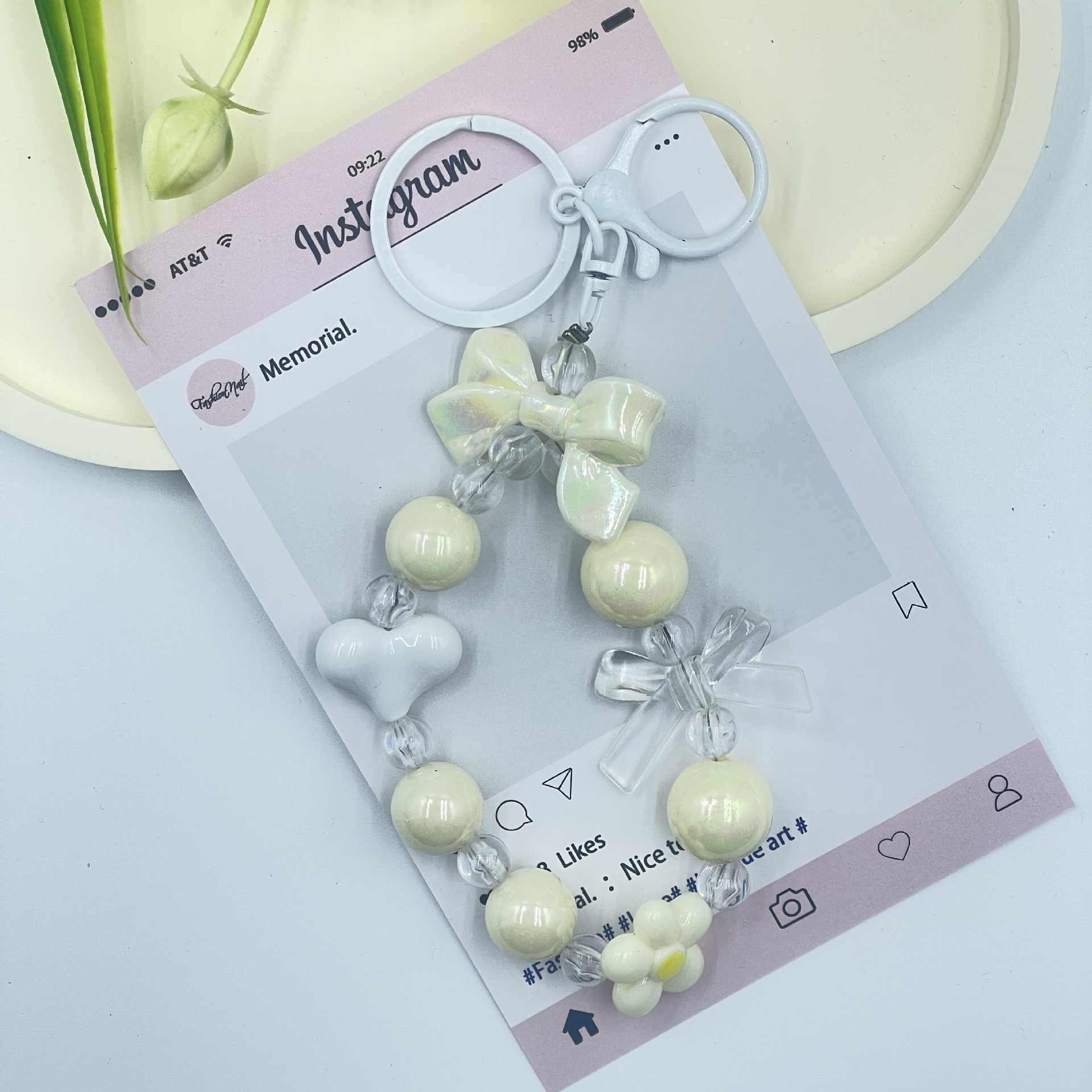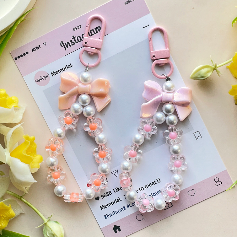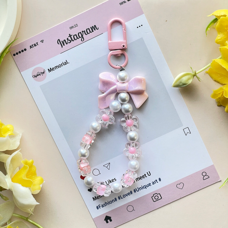 bow key chain-beige