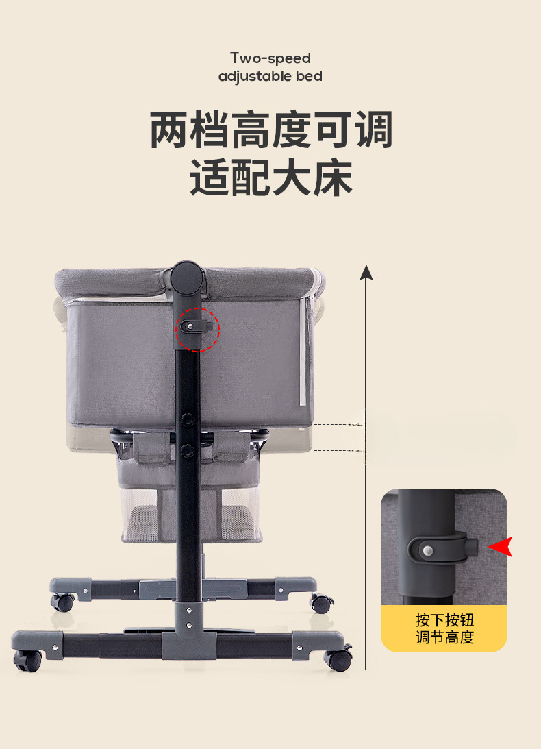 light gray + mosquito net + mattress + storage basket + diaper-changing table