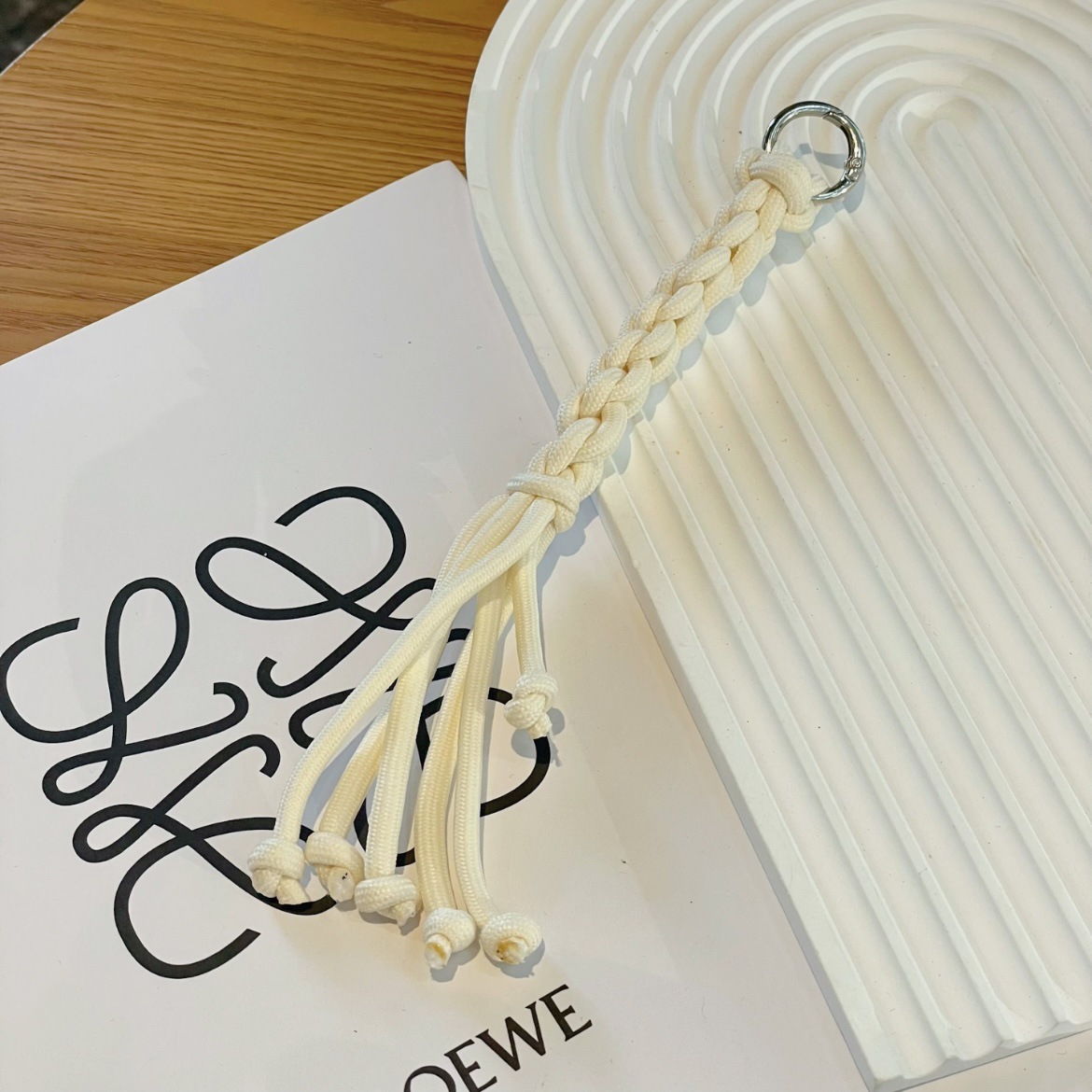 twist lanyard coffee white