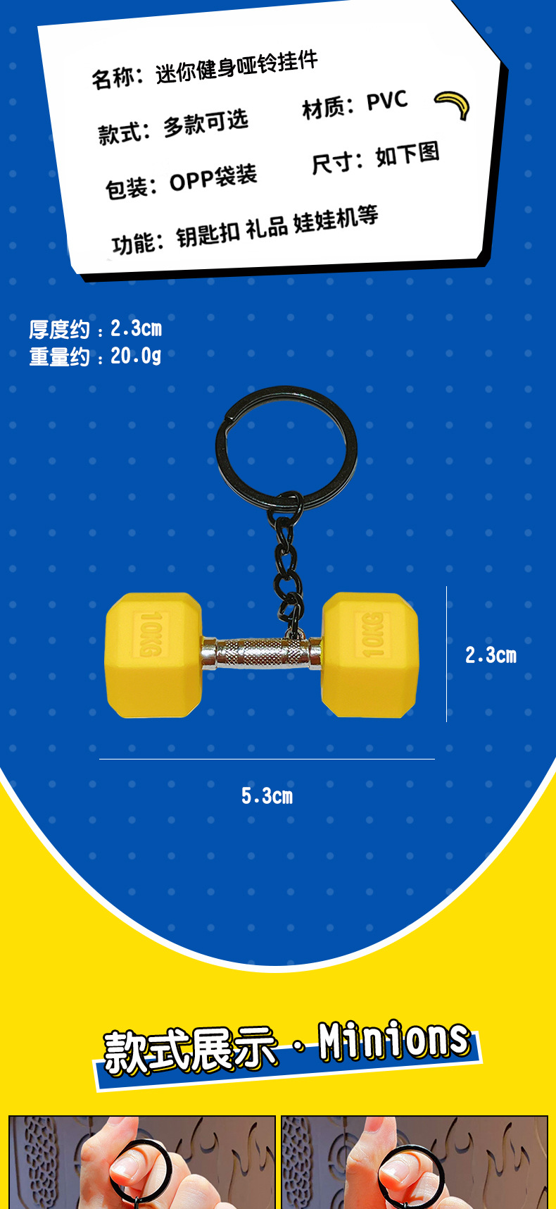 mini fitness dumbbell pendant-yellow