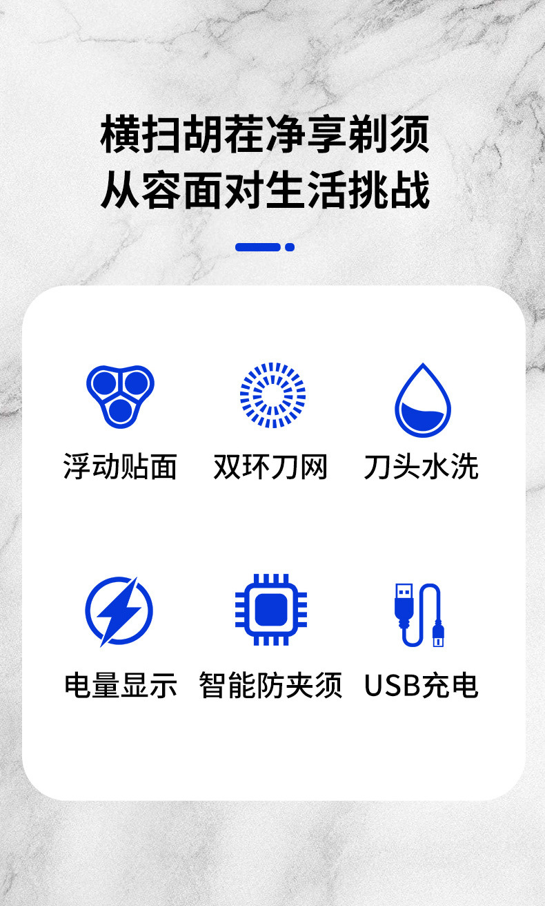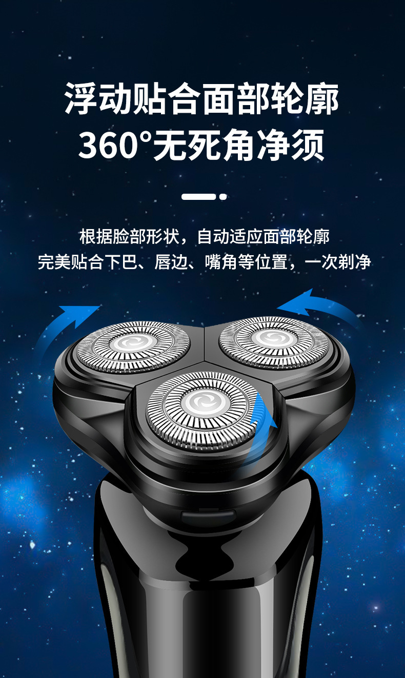 Resolves the pain points of incomplete shaving and sensitive skin, IPX7 waterproof, fast charging with long battery life.