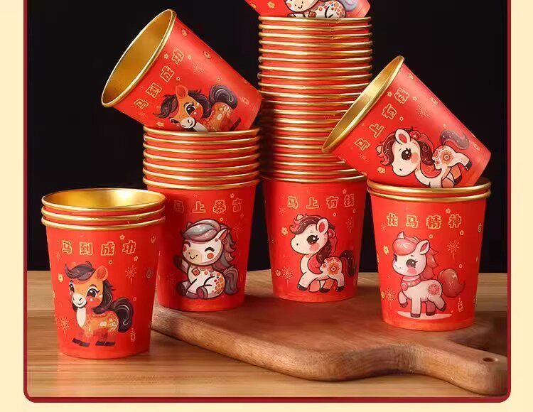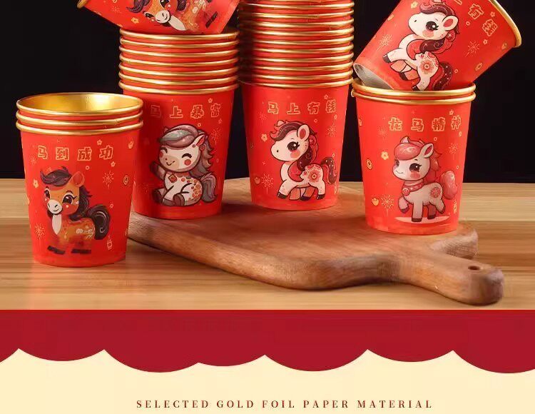 210ml horse year gold foil paper cup [40 pcs per pack]]