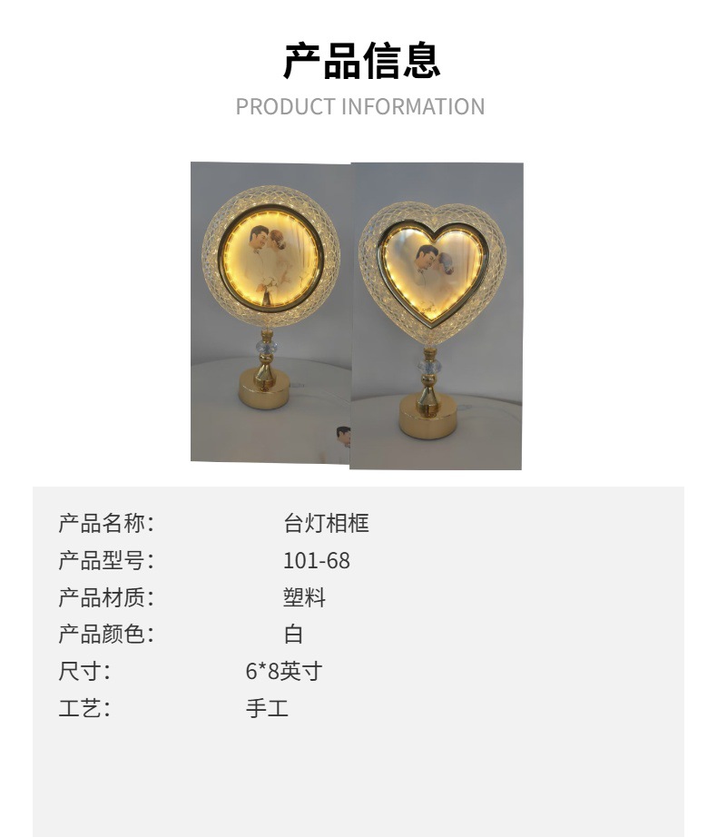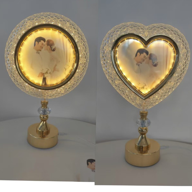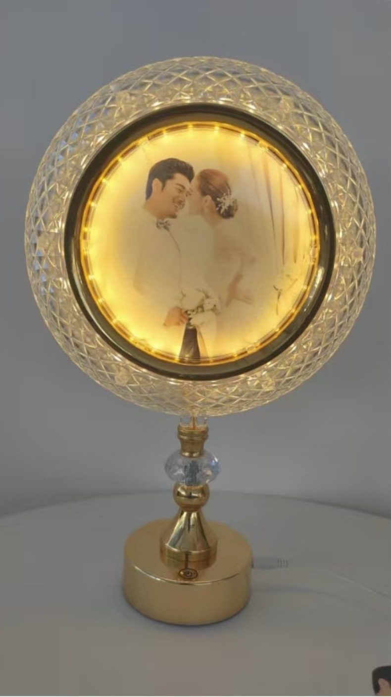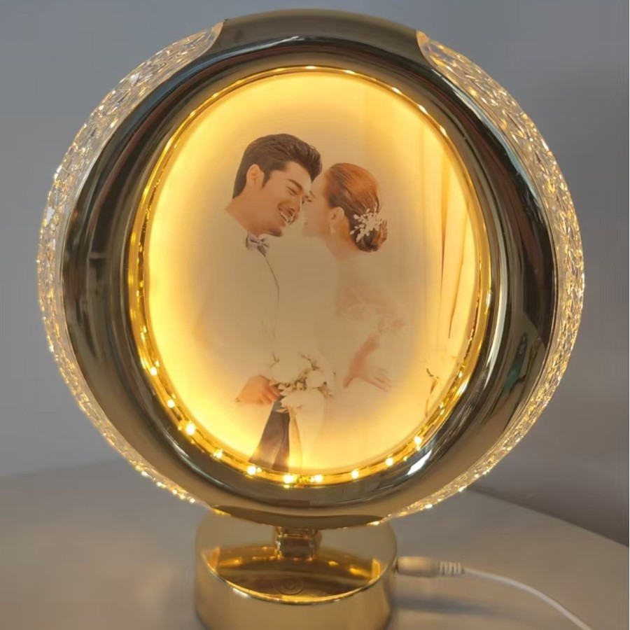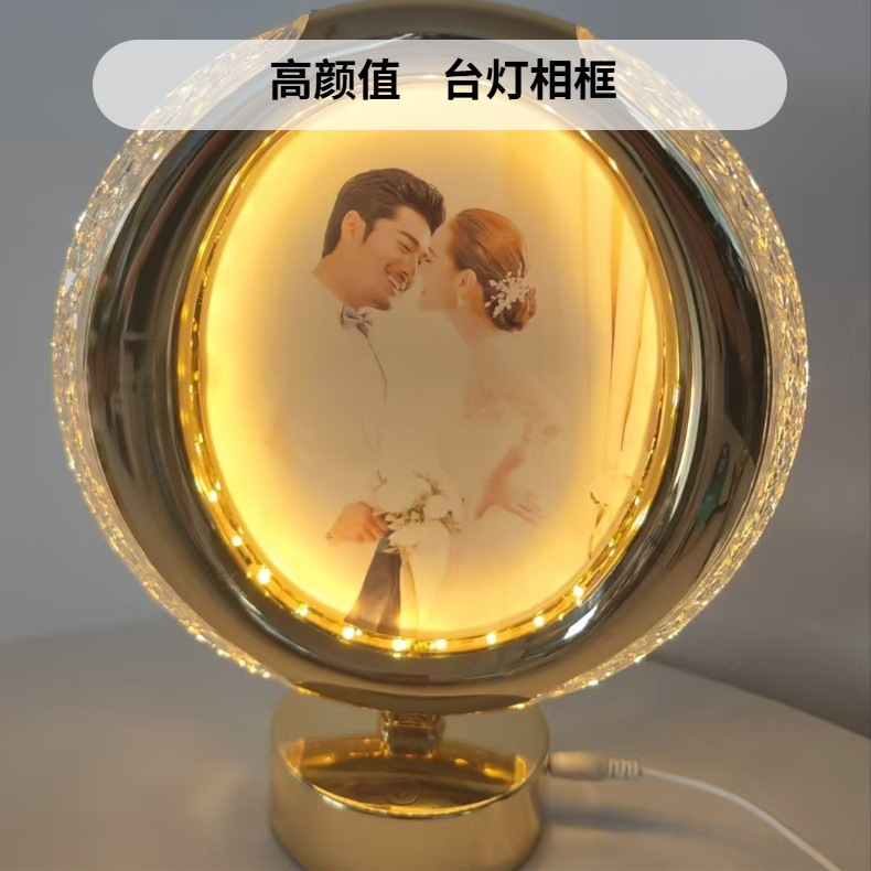 led table lamp photo frame front photo frame back mirror european style high leg decoration ambience light gold simple bedside lamp
