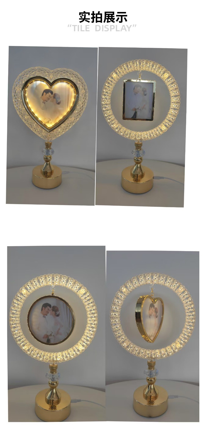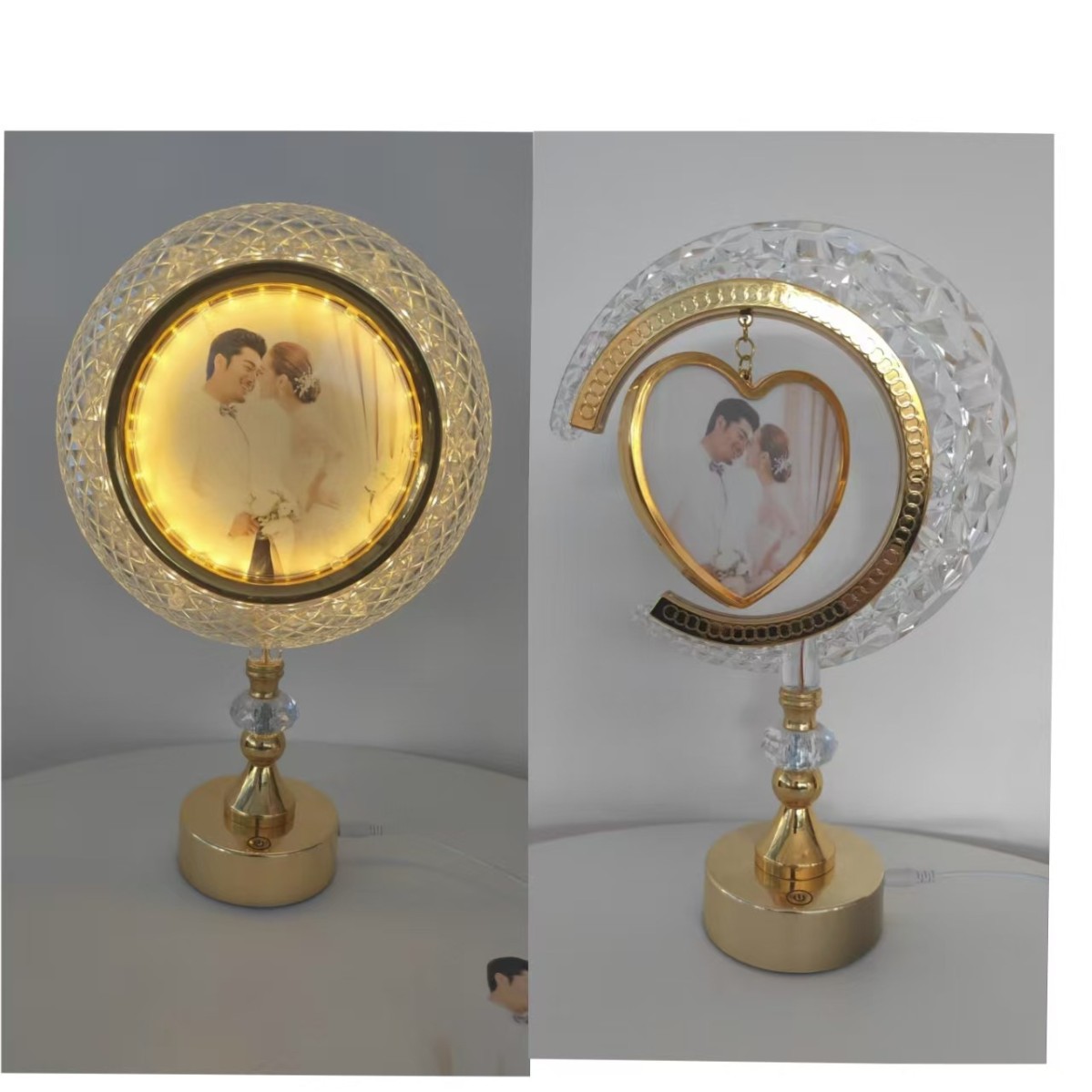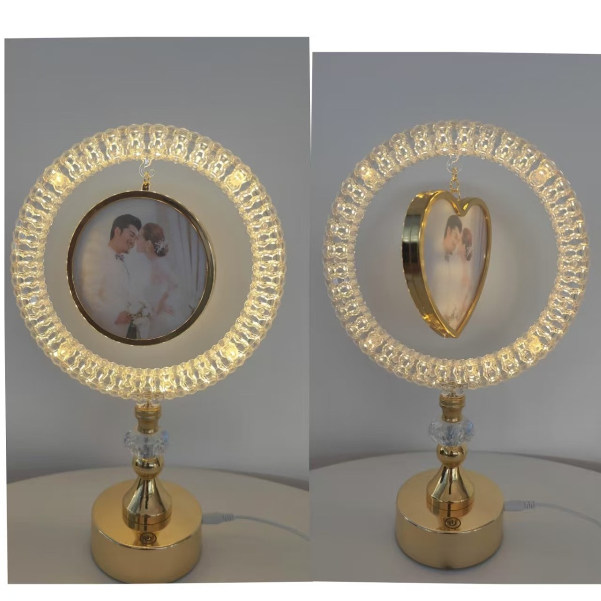 led table lamp photo frame front photo frame back mirror european style high leg decoration ambience light gold simple bedside lamp