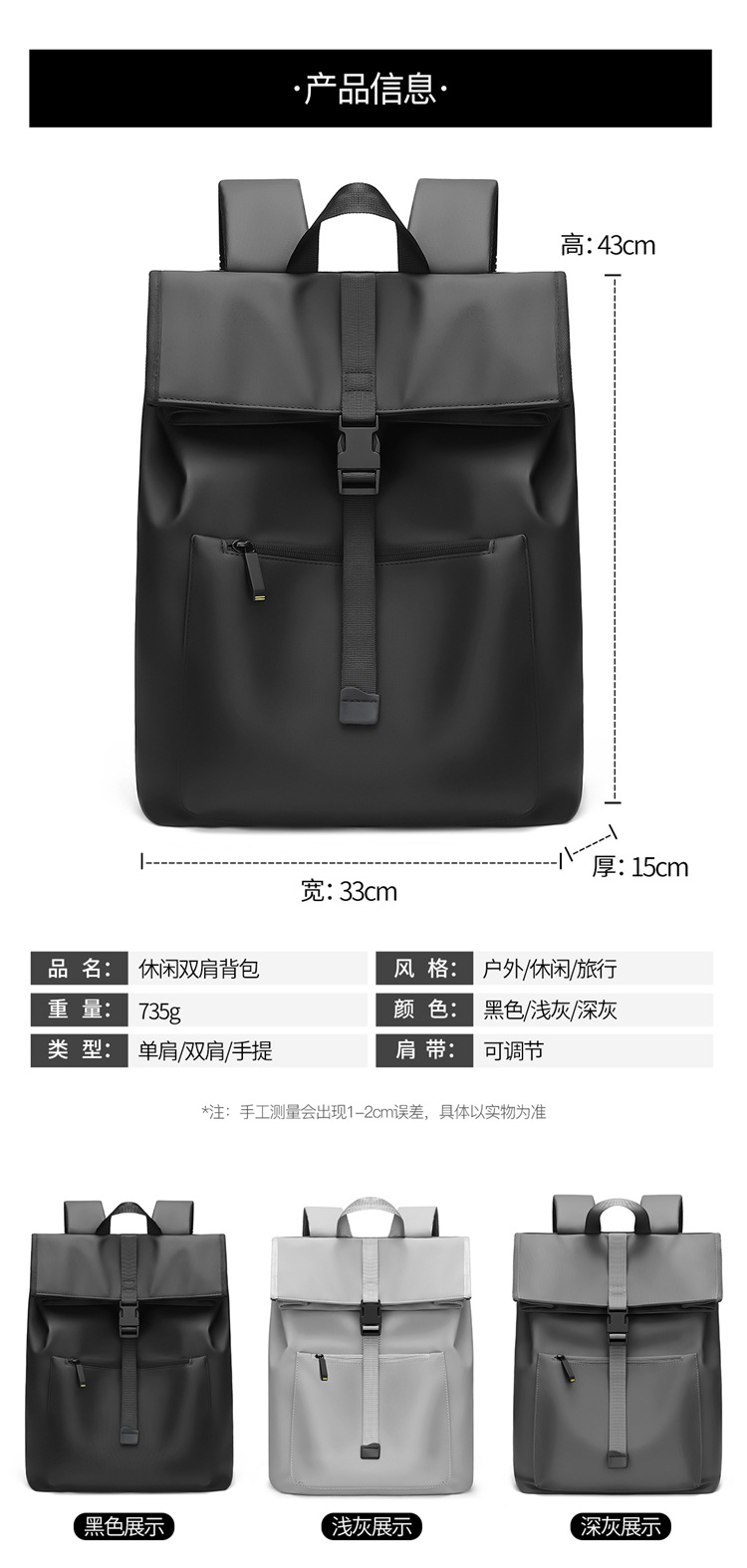 cross-border simple large capacity waterproof backpack men's business backpack high-grade expansion backpack