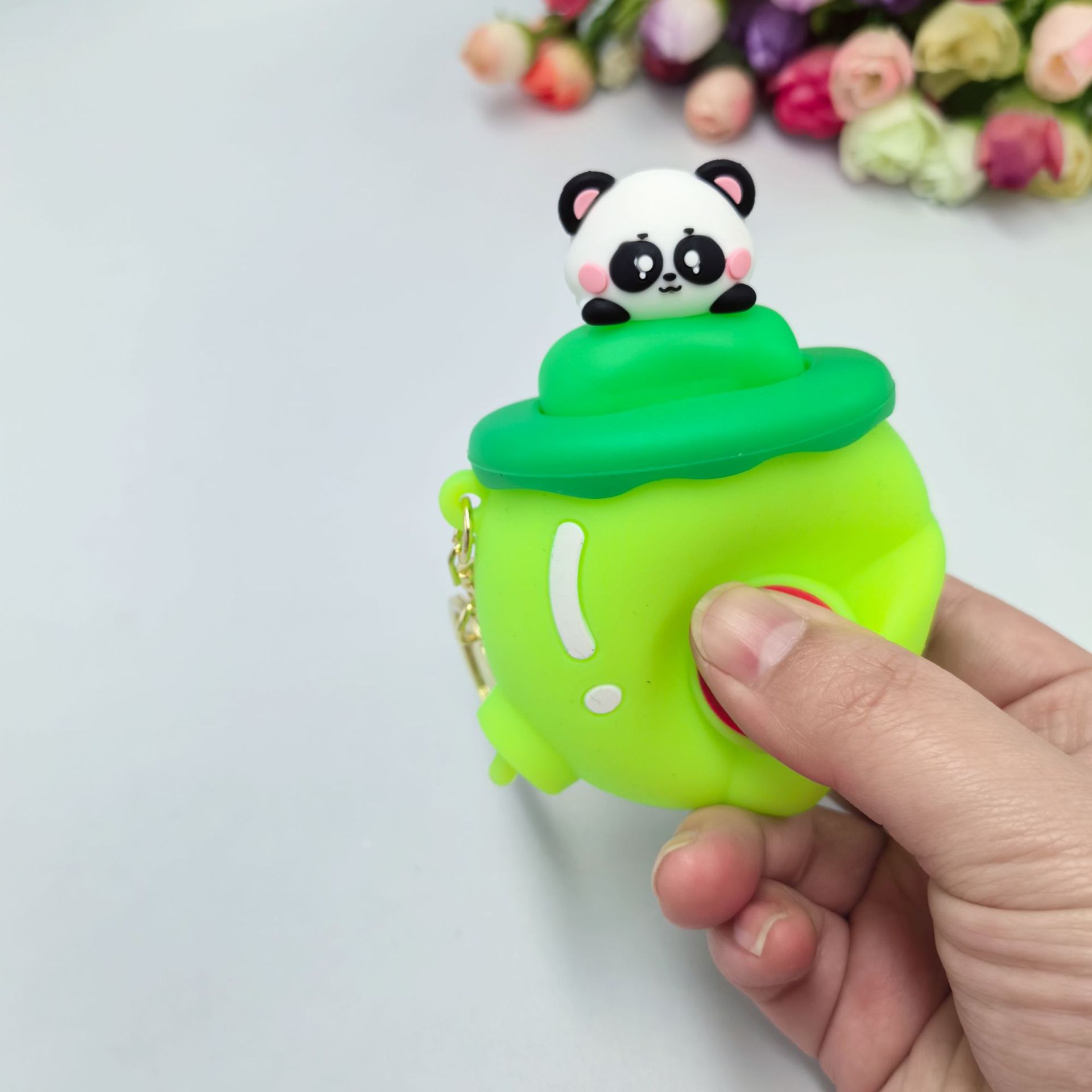 green peach squeezing toy-panda