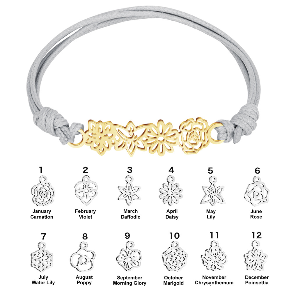 europe and america cross border diy december birthday flower necklace female hot sale at aliexpress birth flower titanium steel all-match bracelet ornament