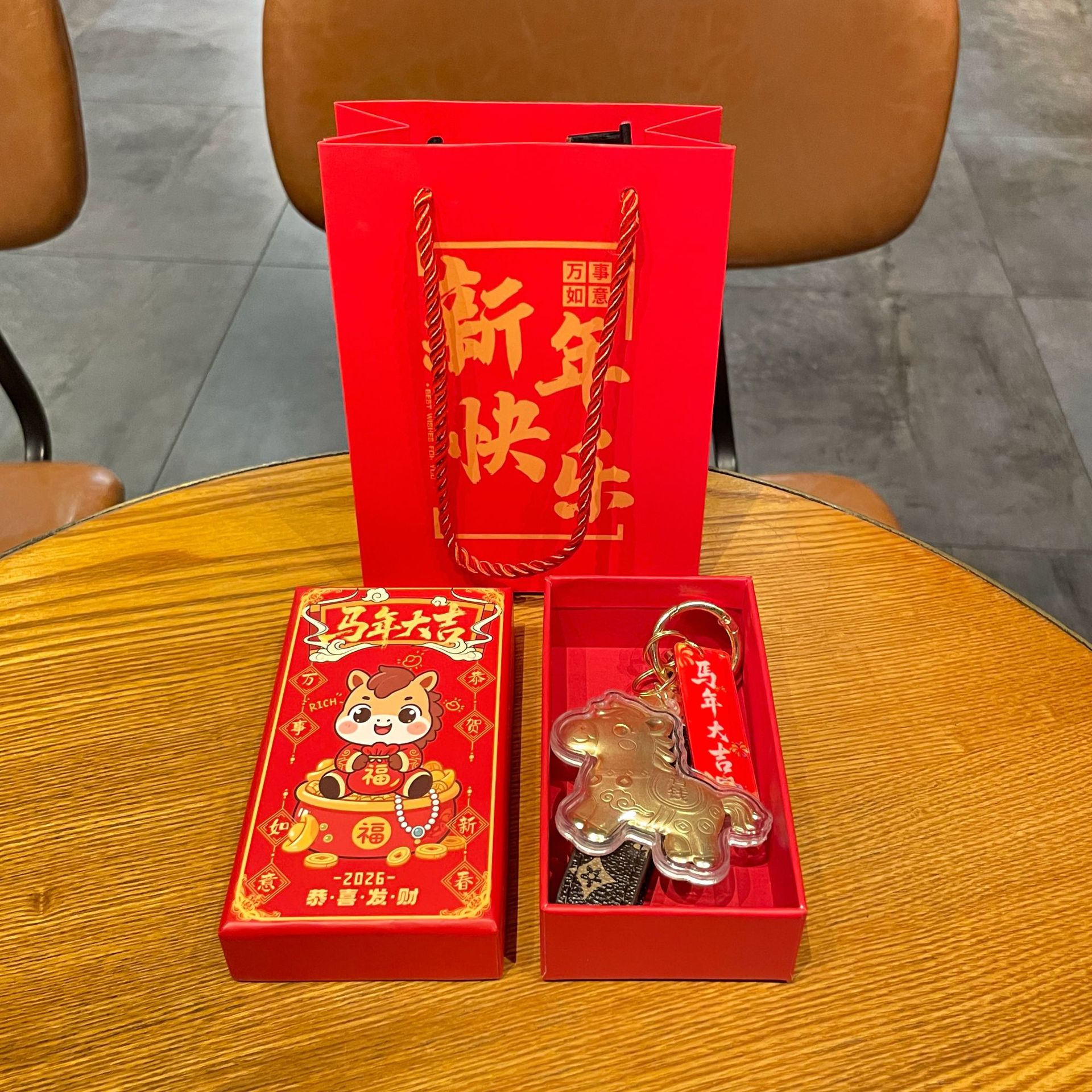 gold foil horse 8#-old pattern will be rich soon + new year gift box + gift bag