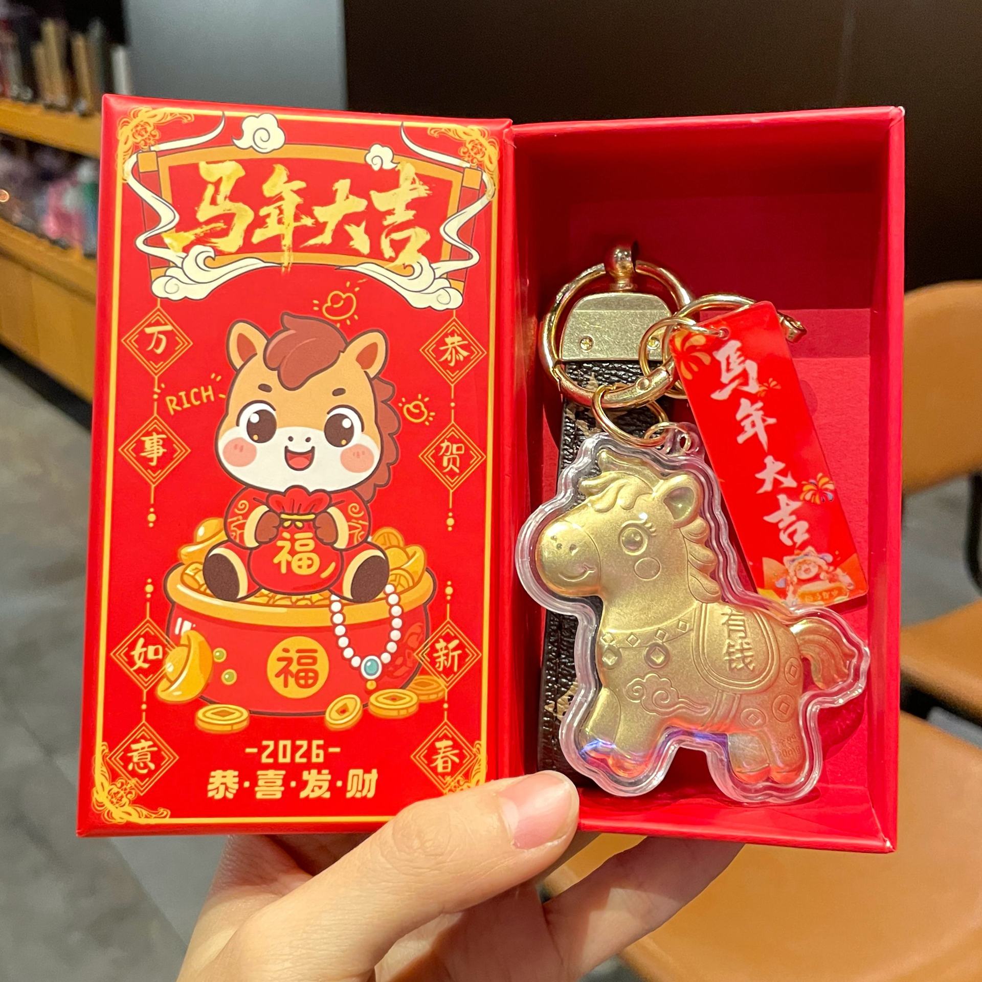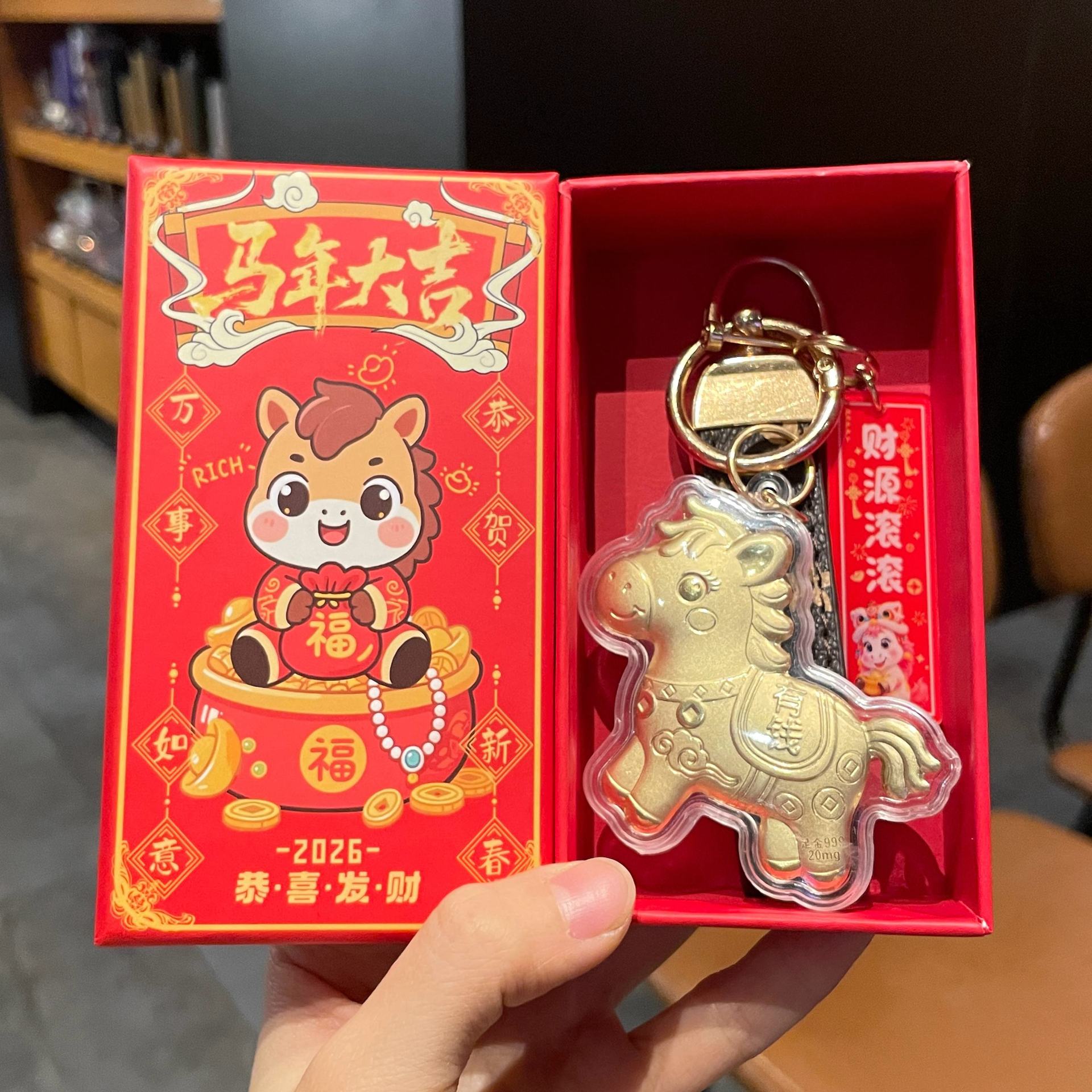 gold foil horse 7#-old pattern fortune rolling + new year gift box
