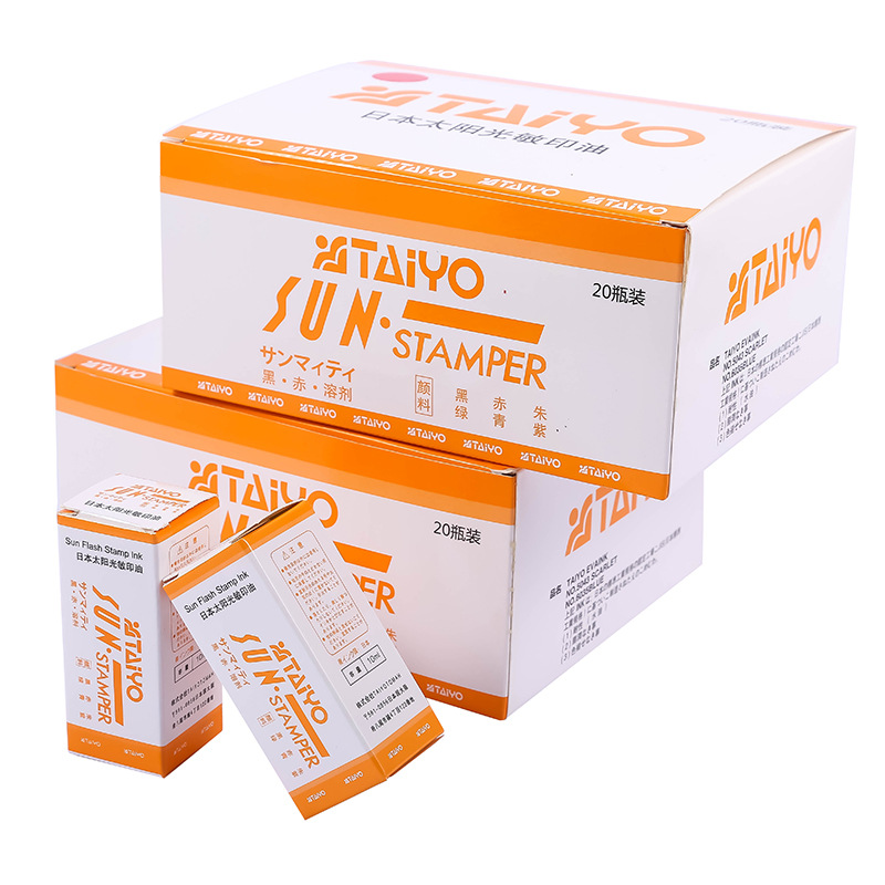 "日本太阳"可以翻译为 "Japanese Sun"。Photocopy ink is not easy to settle, with bright colors and high color density; the imprint is clear and uniform, resistant to acid, alkali, not to dissolve water, not to fade, not to soak the paper, the penetration speed is fast, immediately dry after printing, resistant to high temperature, low temperature, strong stability, and the imprint pad does not have adverse reactions, and can be repeatedly refilled with oil and other characteristics.