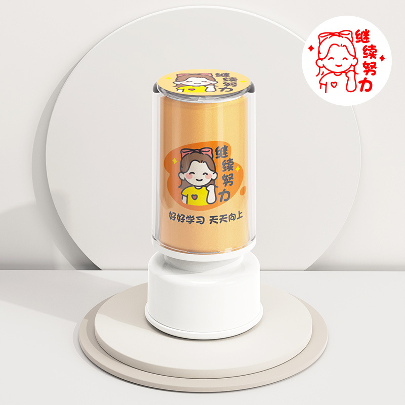 cartoon window children reward seal-blue-continue to work hard