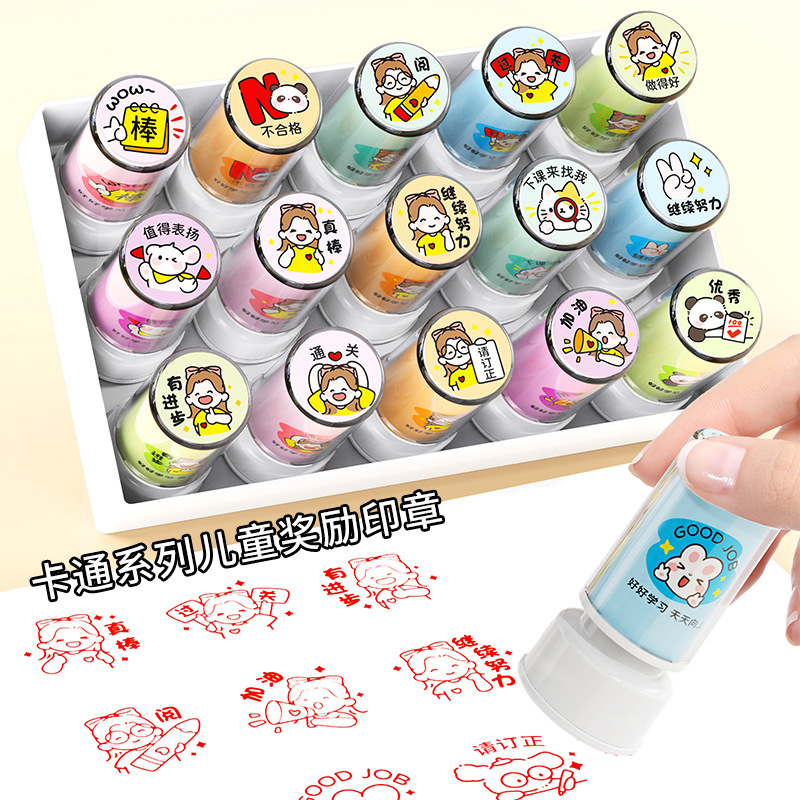 cartoon window children reward seal-blue-pay attention to writing