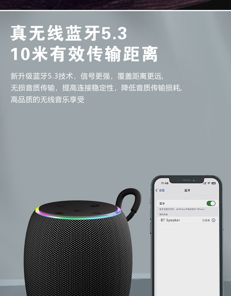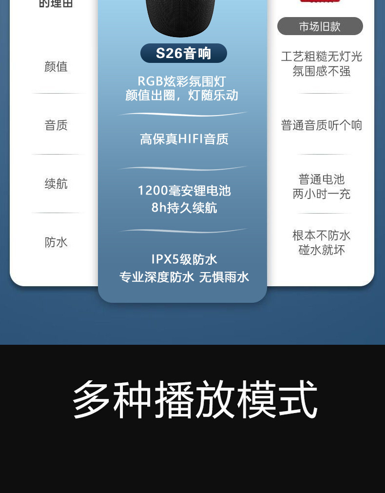 s26 new bluetooth speaker rainbow ambience light mobile/portable outdoor waterproof stereo system subwoofer wholesale