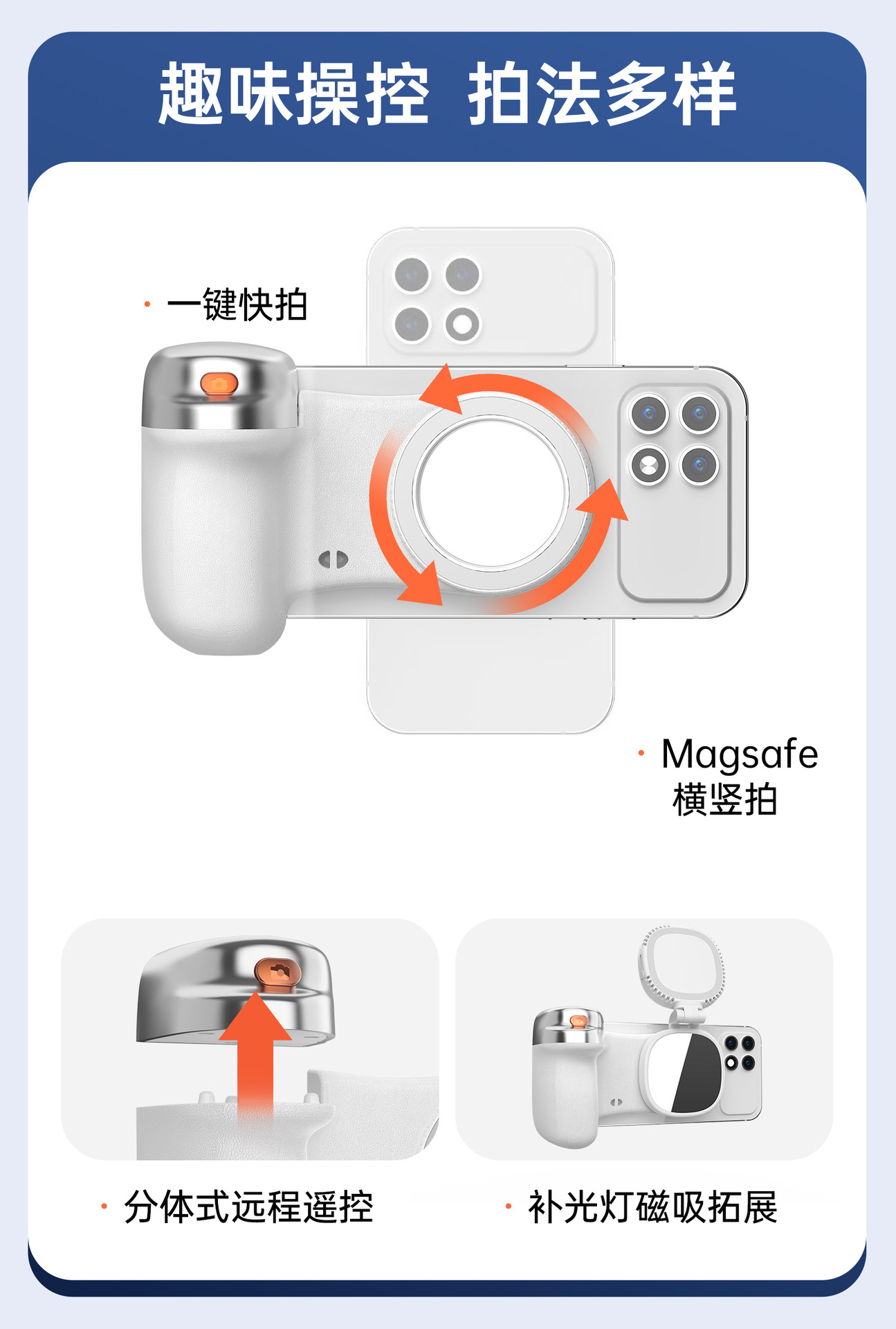 magsafe camera aid bluetooth handheld portable photo shooting selfie mobile phone photography handle magnetic suction shooting fill-in light