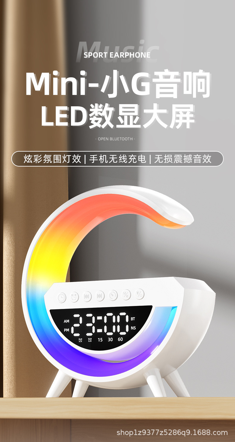 3401mini large cross-border new arrival small bluetooth speaker wireless charger alarm clock ambience light multifunctional stereo loud sound