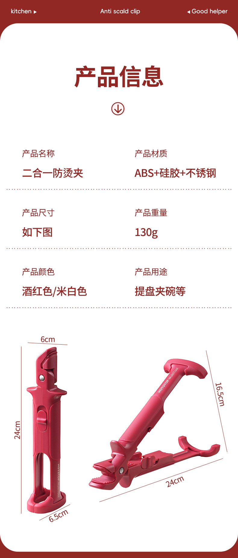 wine red 2-in-1 dish clamp]]