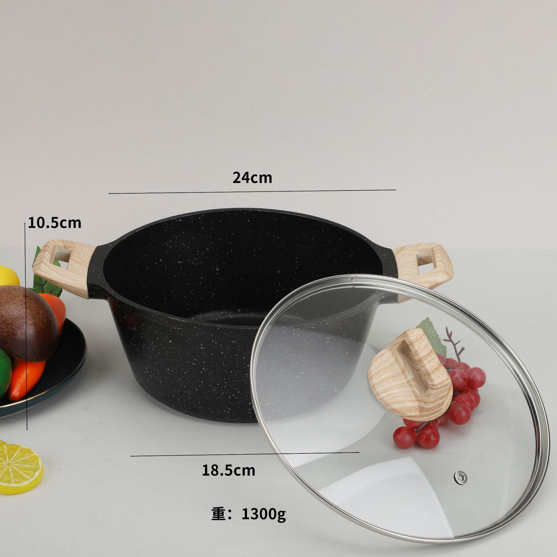 24cm black + glass cover