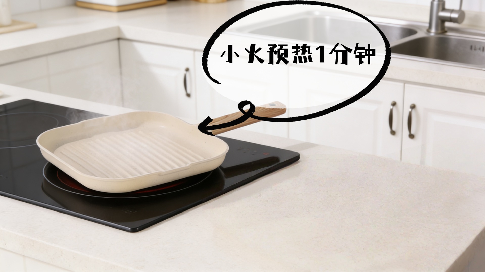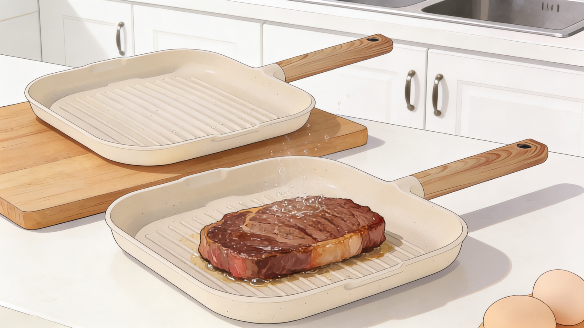large steak frying pan beige