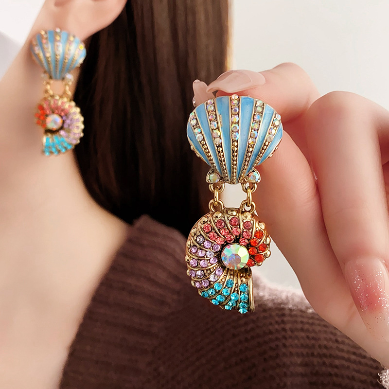 silver needle-color diamond peacock flower stud earrings