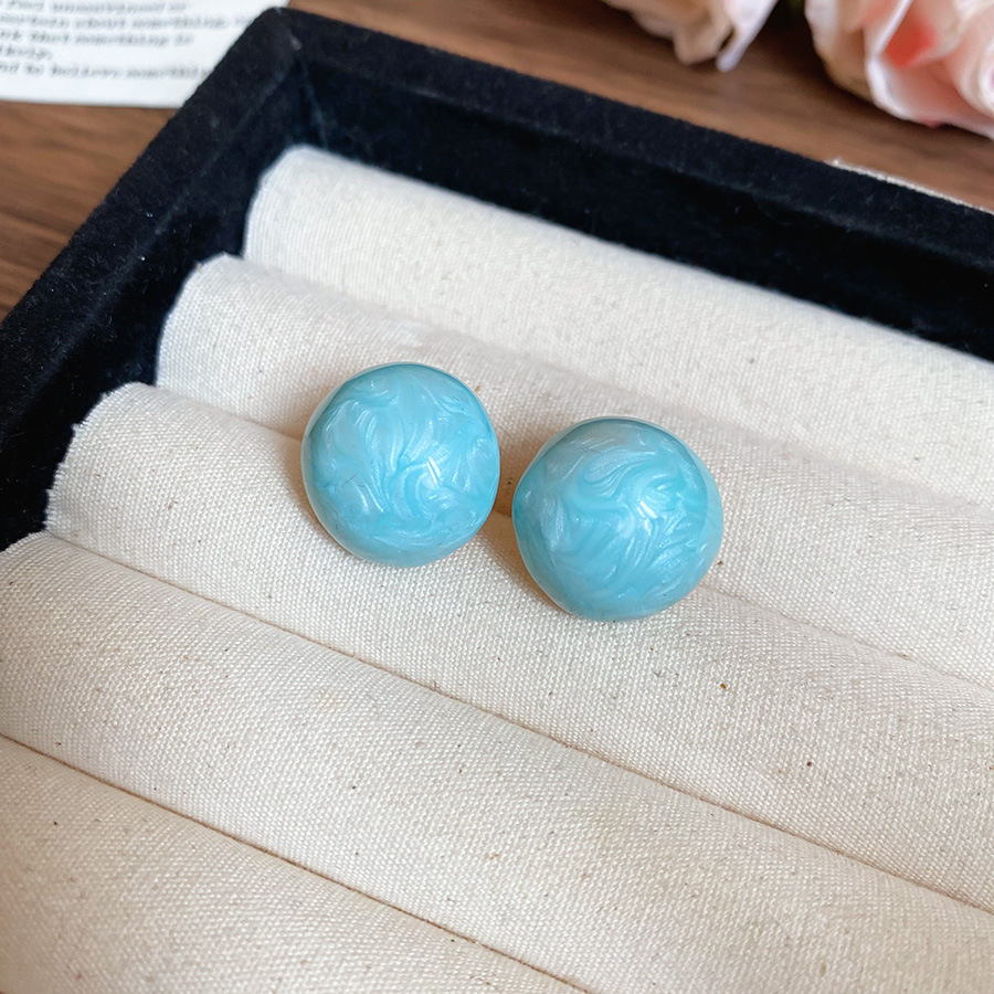 33# silver needle resin stud earrings-blue