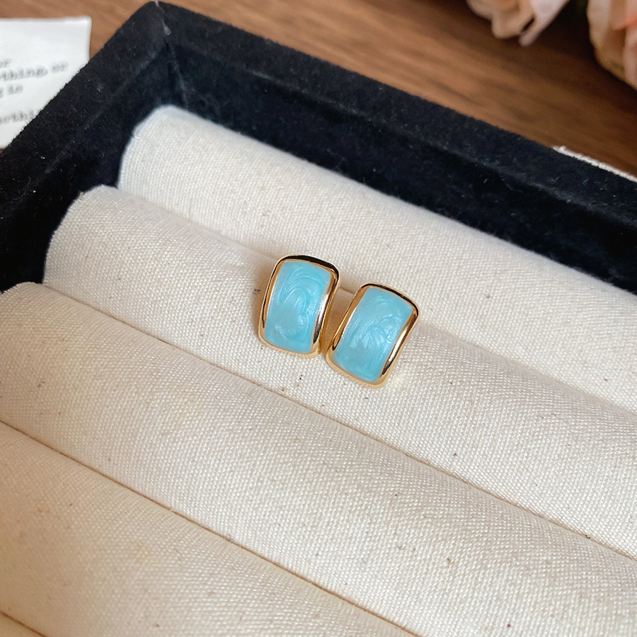 17# silver needle dripping stud earrings-blue