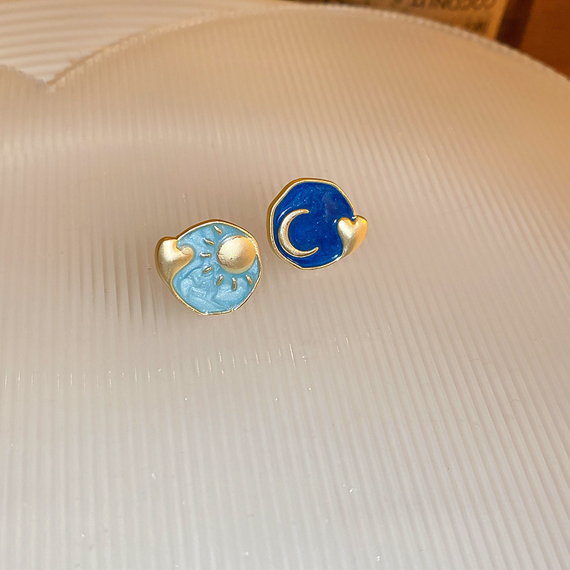 1# silver needle-dripping stud earrings-haze blue