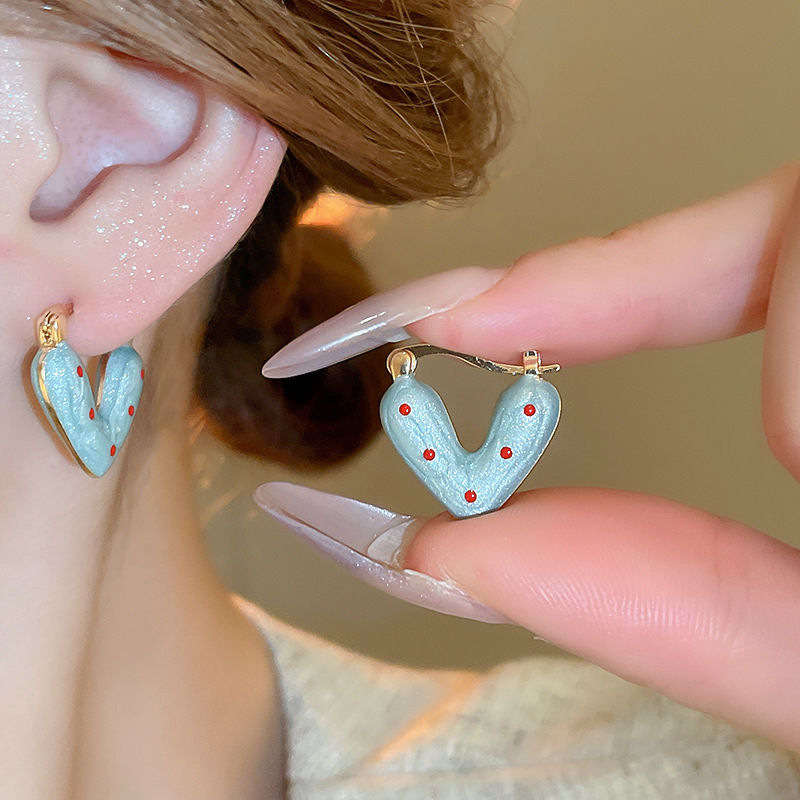 9# silver needle heart dot ear clip-golden-blue