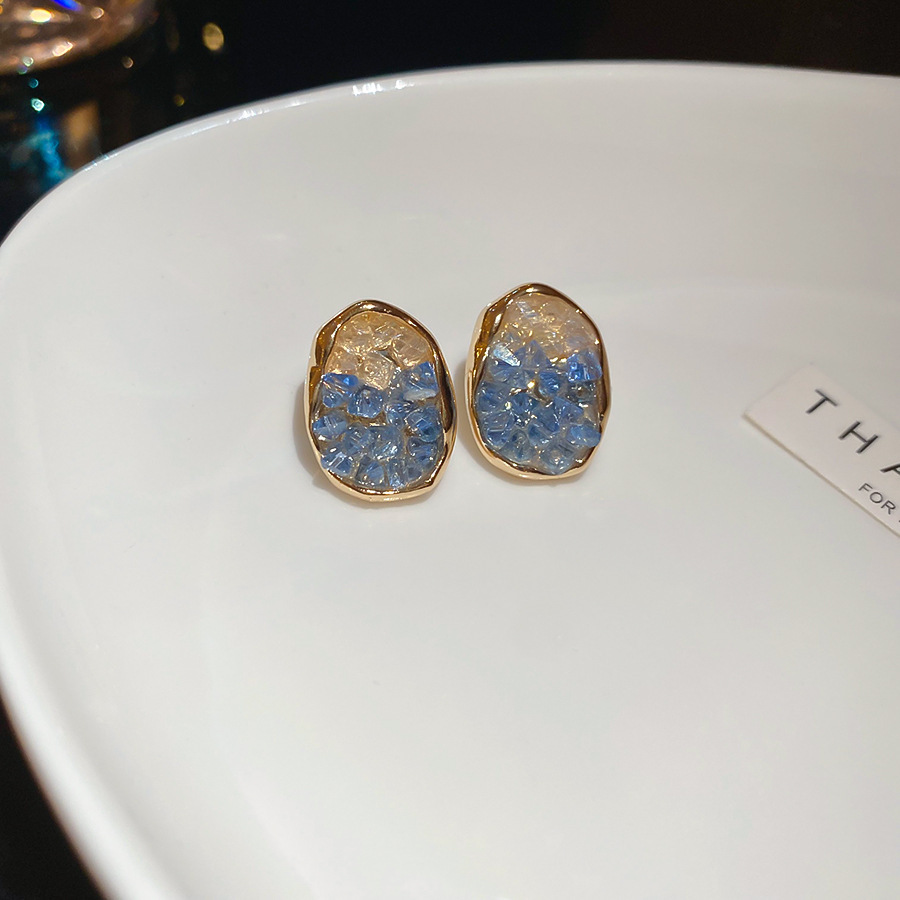 48# silver needle resin stud earrings-golden-blue.