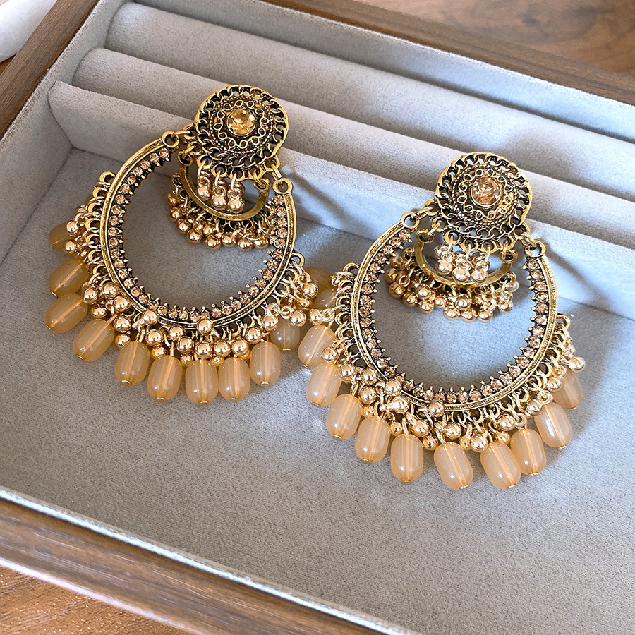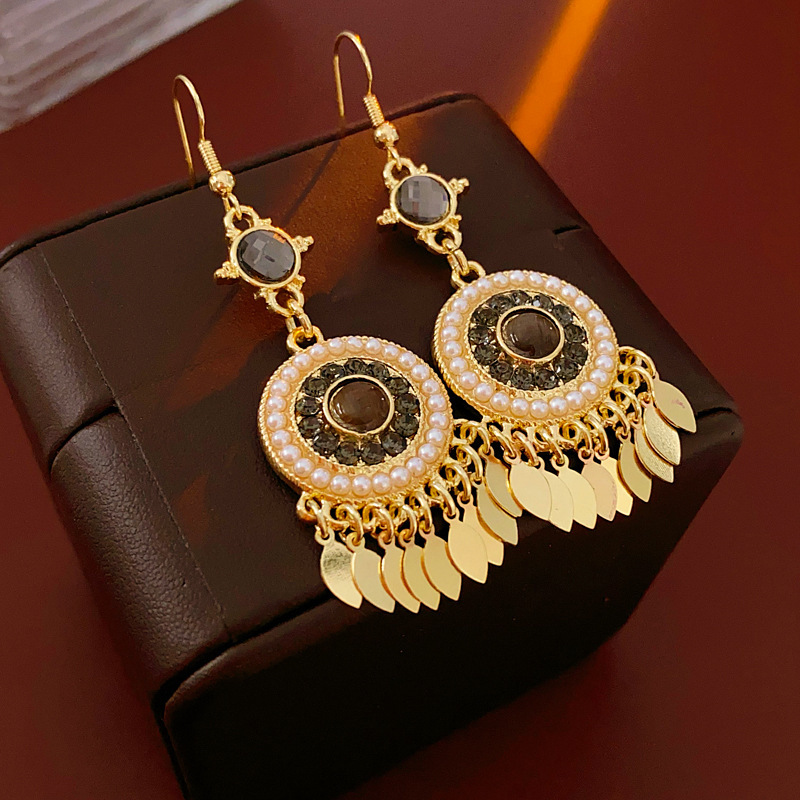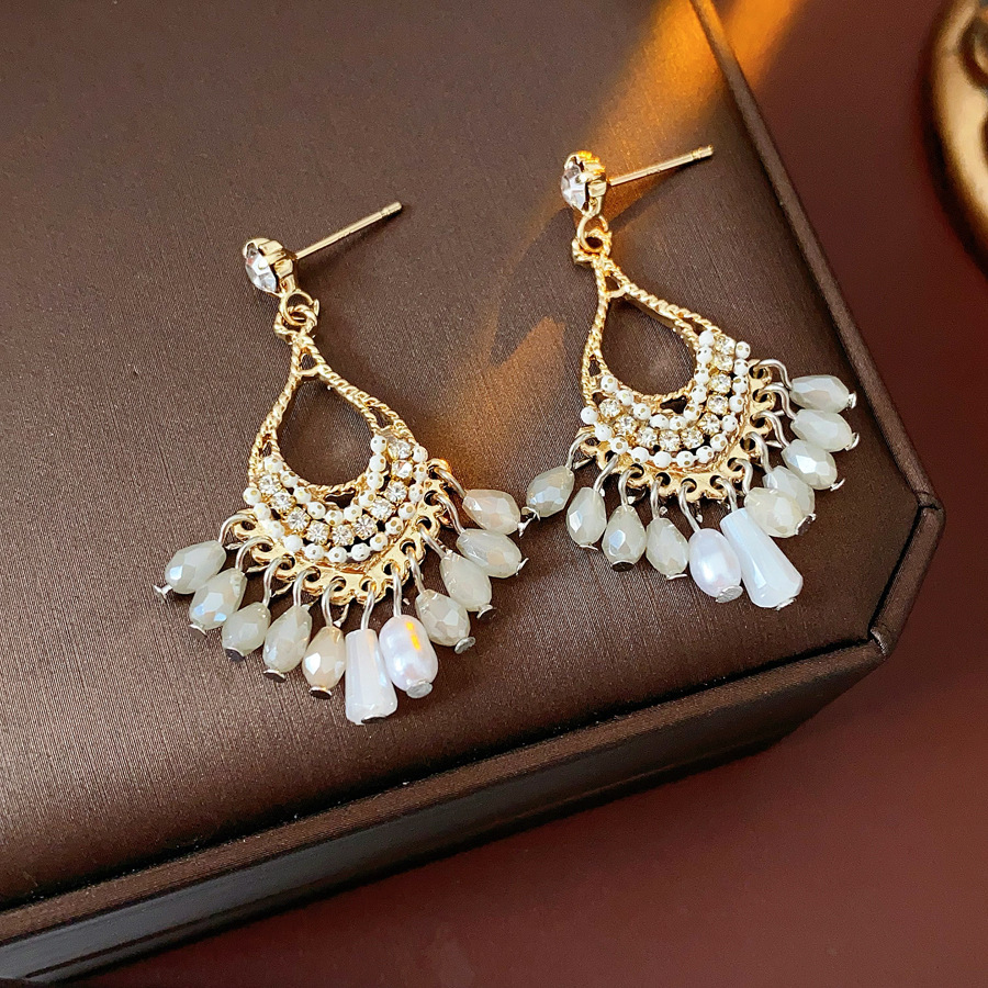 15# gold steel needle diamond oval tassel stud earrings