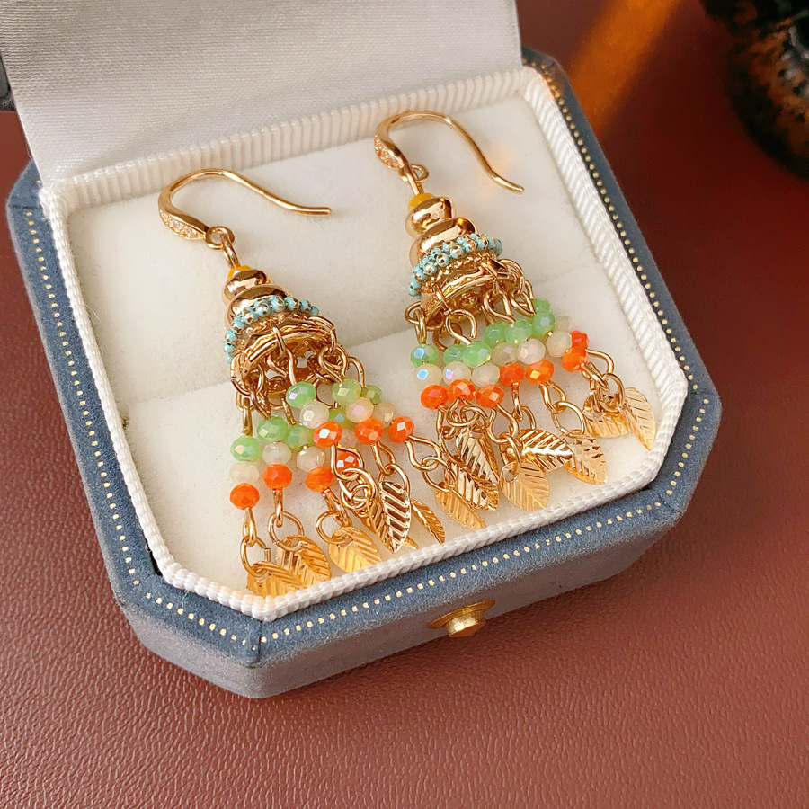 39# zircon glass leaf tassel ear hook