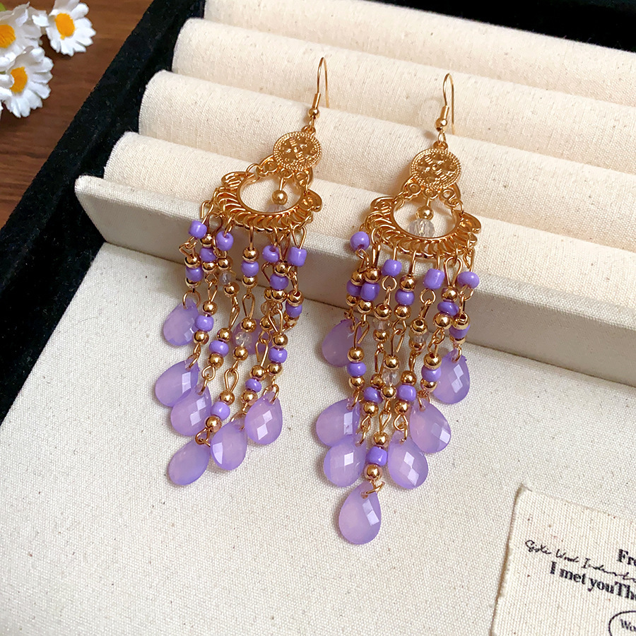 19# purple round water drop tassel ear hook