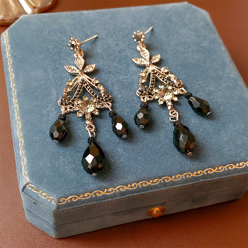 5# black steel needle round diamond water drop ear studs