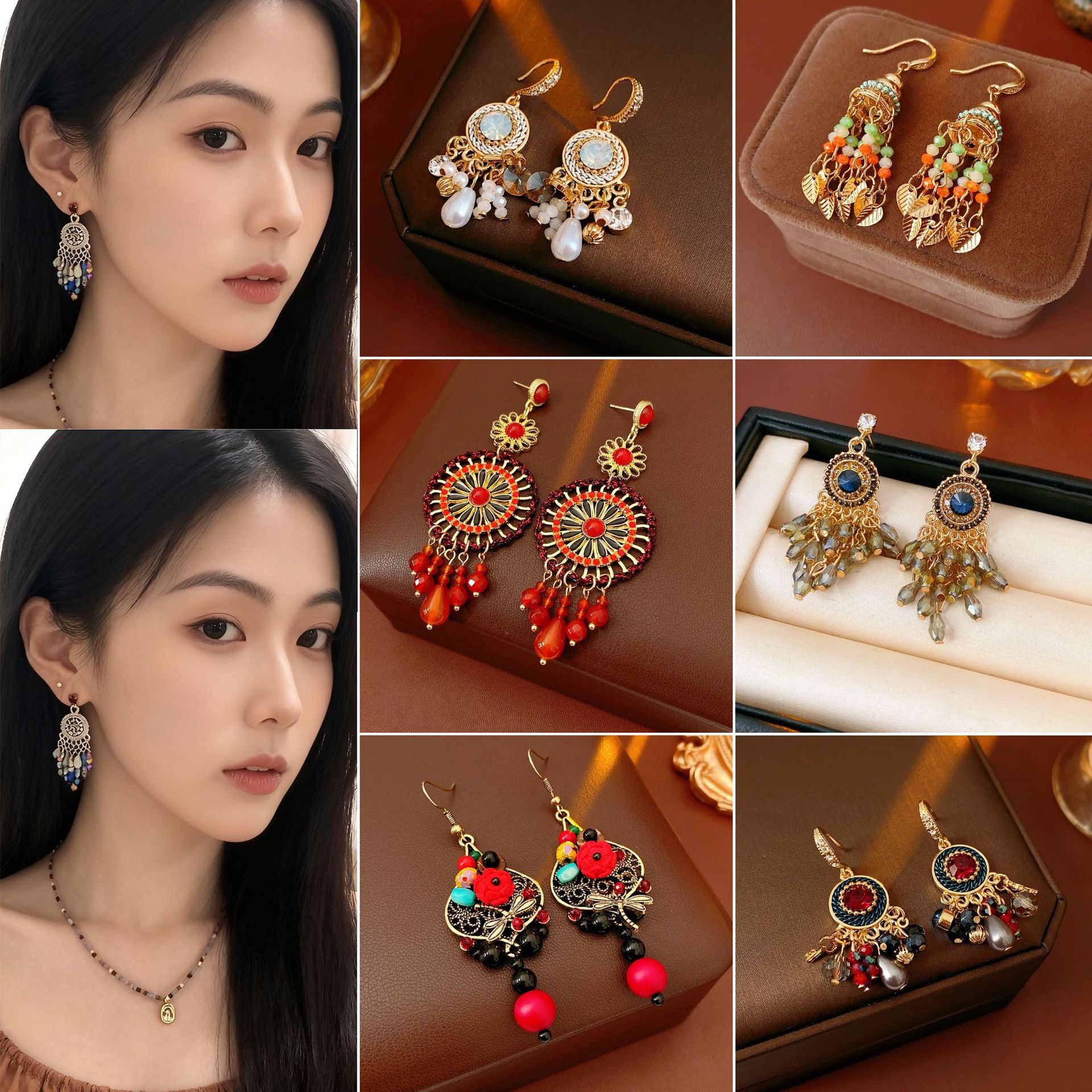 34# diamond crystal tassel lantern ear hook