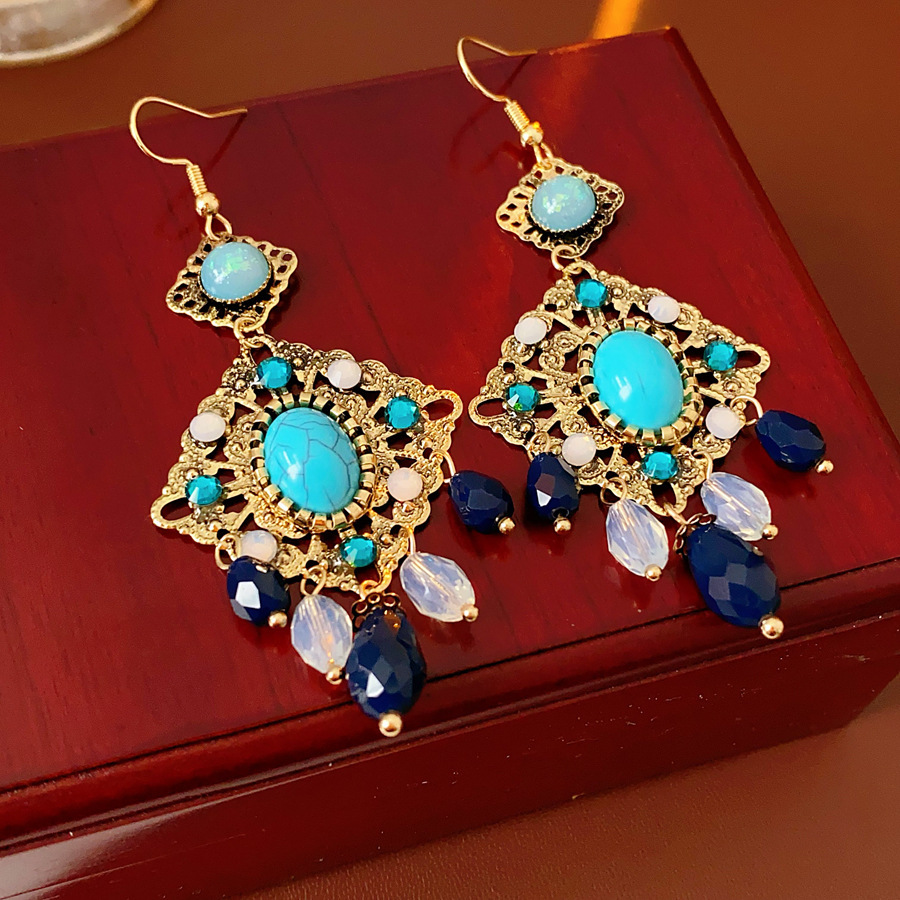 12# blue zircon flower tassel water drop ear hook